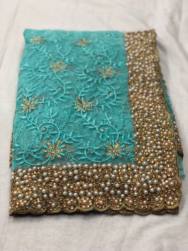 Full saree of heavy quality net with heavy embroidery , multy work*