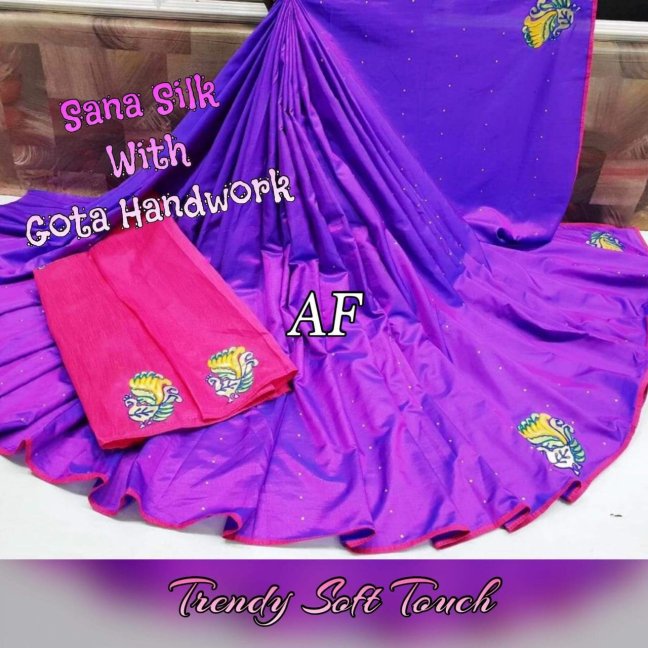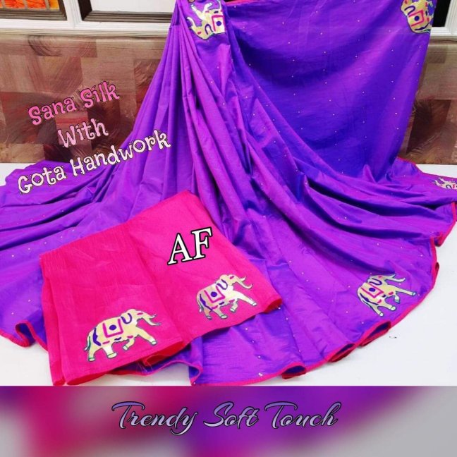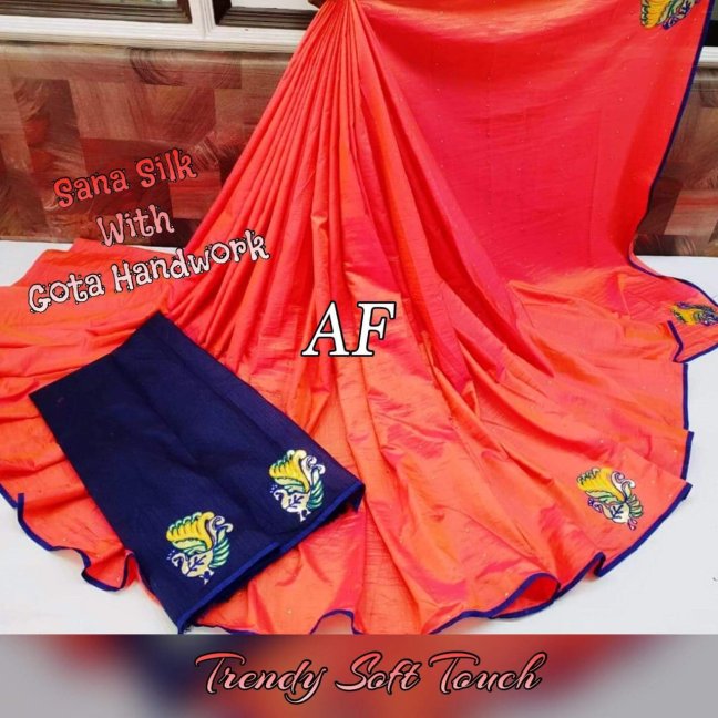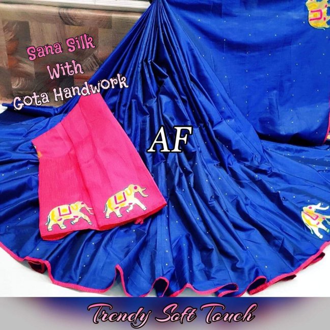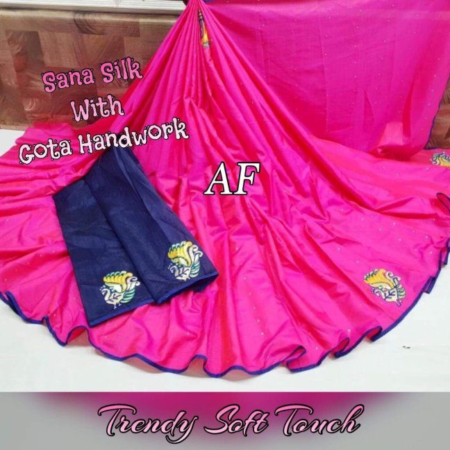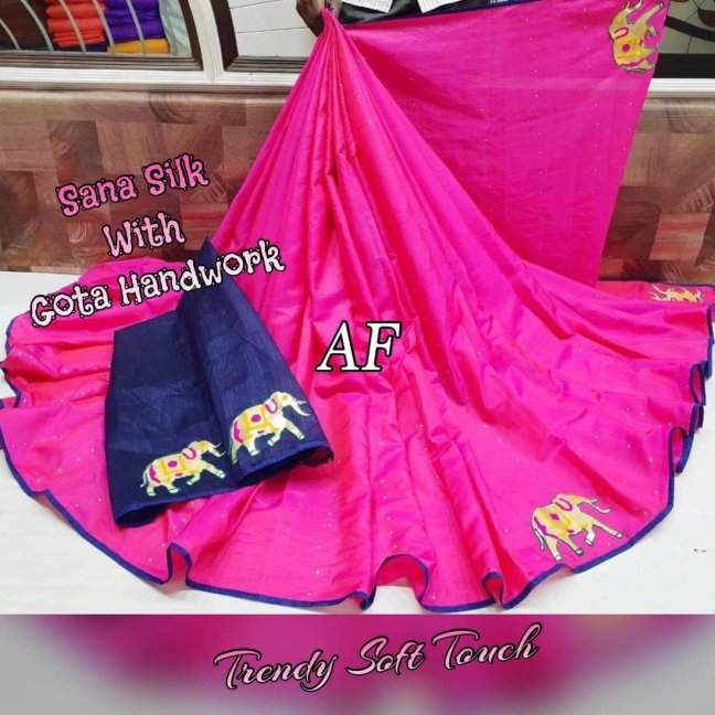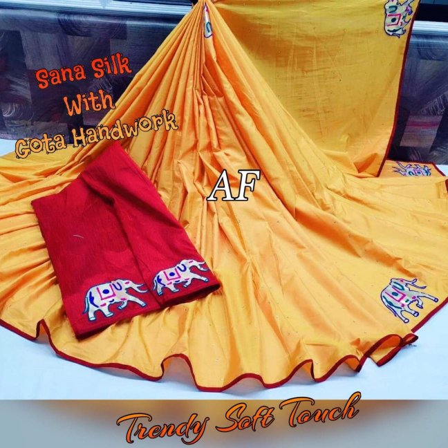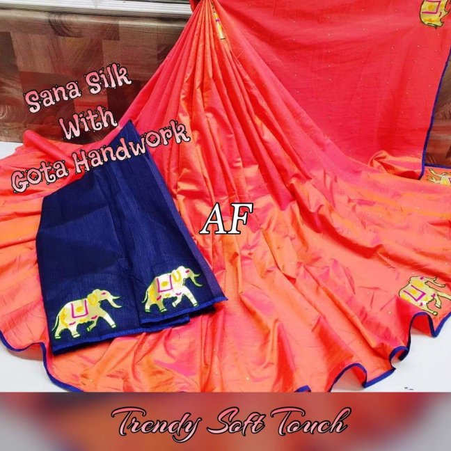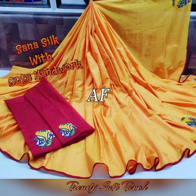 Sana Silk Saree Posted on August 31, 2018 by bendthetrend19 Sana Silk Saree with Gota hand work‼ 5 patch in saree Highlighted with stone work. 3 patch on blouse with (2sleves and 1 back)gorgeous Gota patch work craftsmanship👌🏻💥 RS.1085/-only💃🏻‼FREE shipping Share this: Share on Facebook (Opens in new window) Facebook Share on WhatsApp (Opens in new window) WhatsApp Email a link to a friend (Opens in new window) Email Share on LinkedIn (Opens in new window) LinkedIn Like Loading... Related