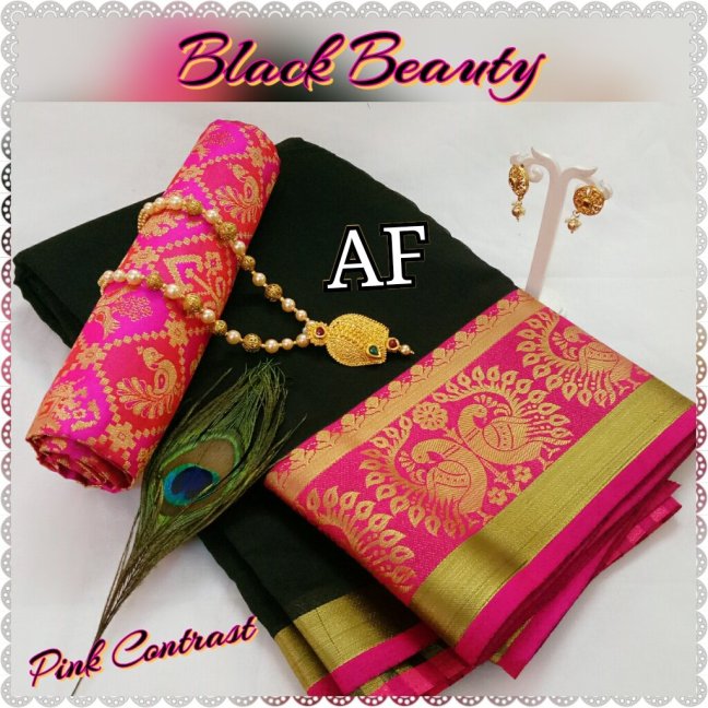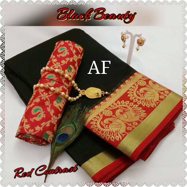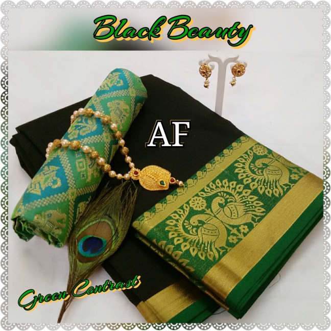 Handloom Cotton Silk Saree includes Running Blouse. Pretty Contrast double peacock highlighted in golden weave.lines pallu.Rs.899/-only