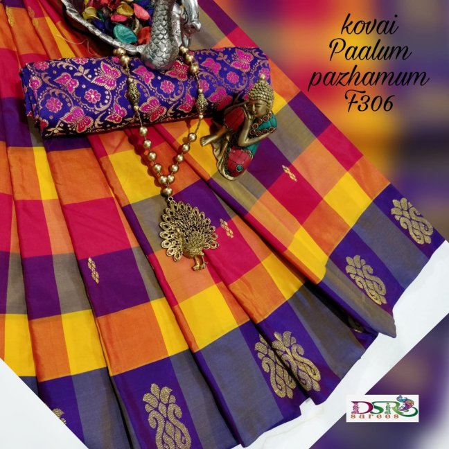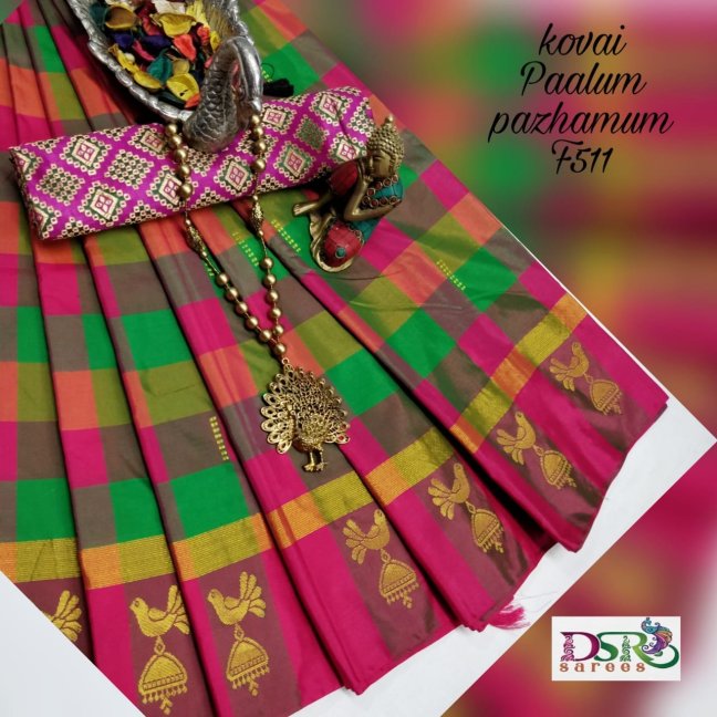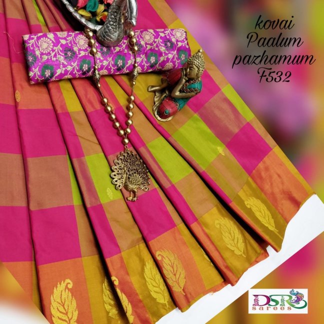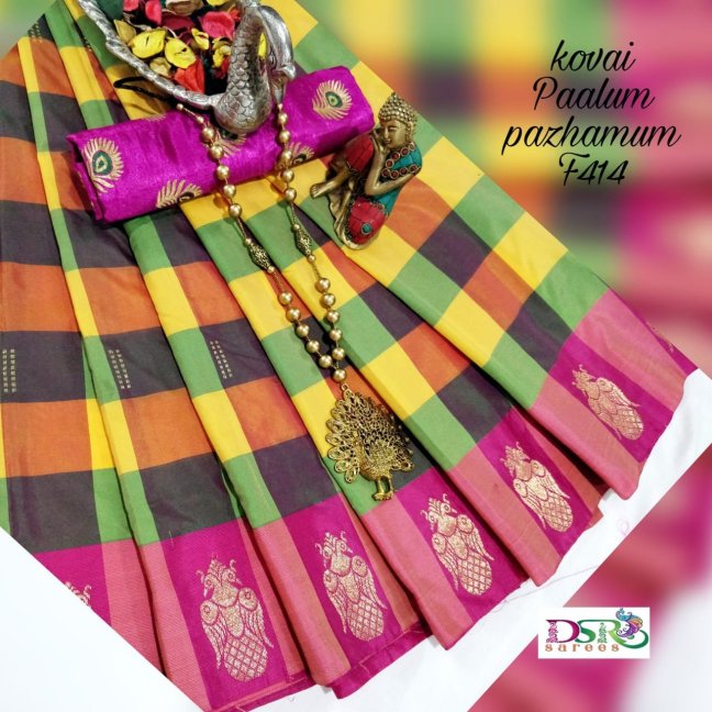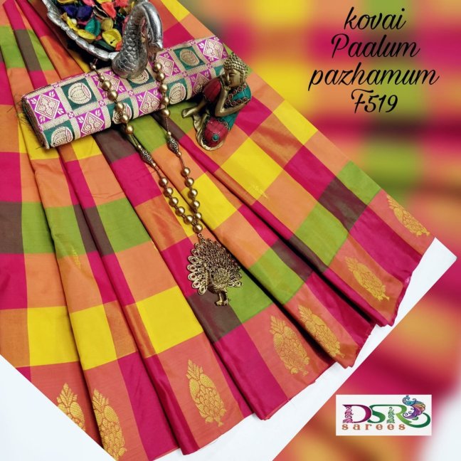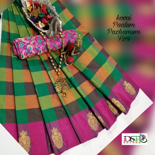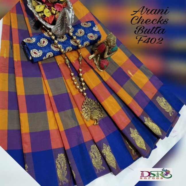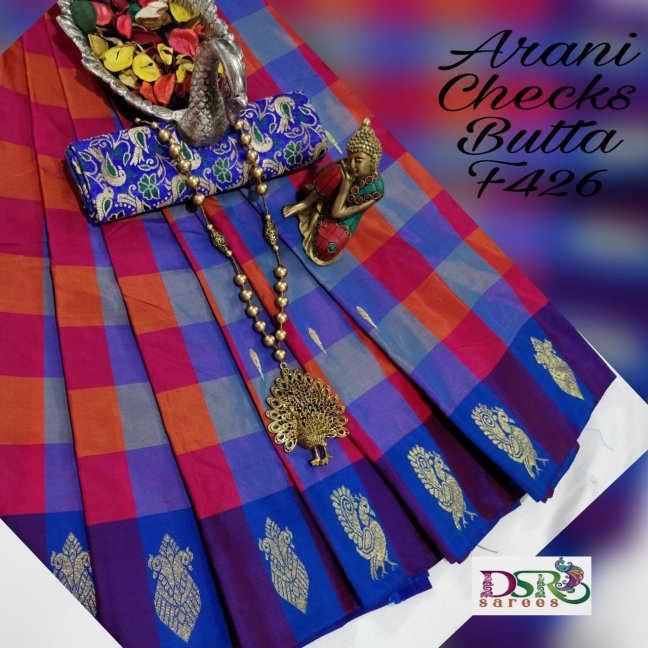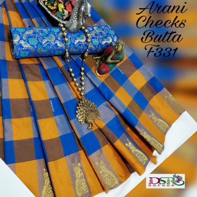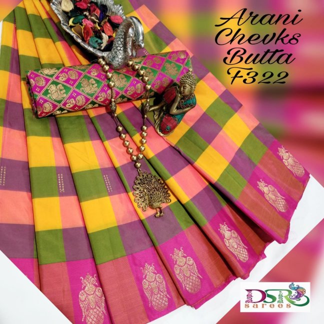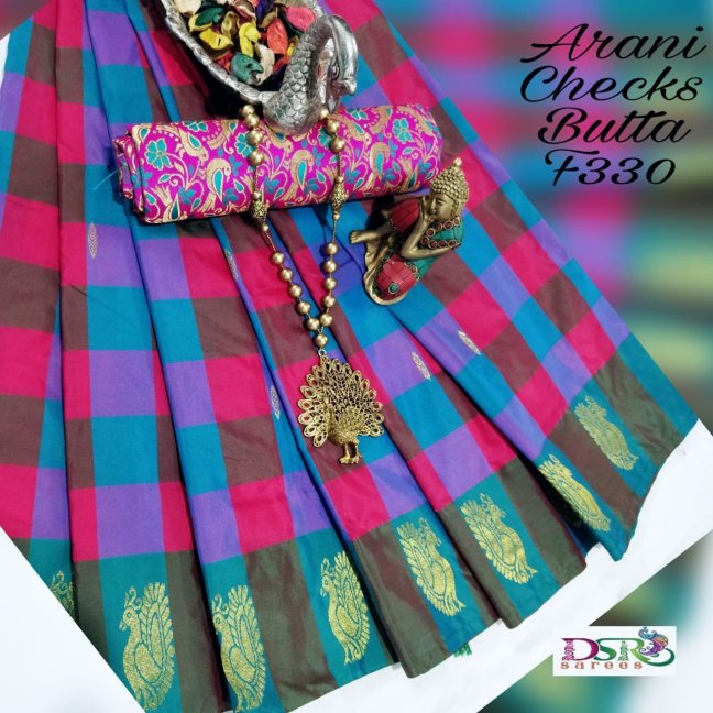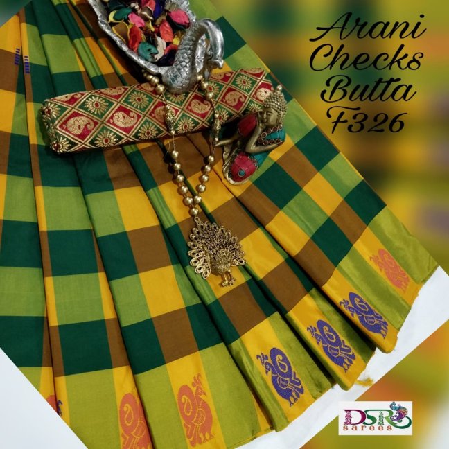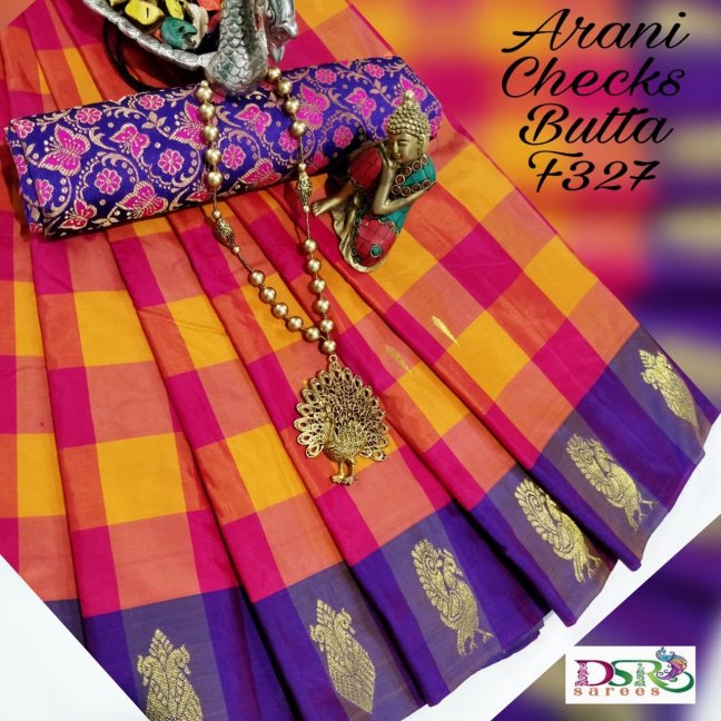 Arani/Kovai pattu, Checks now with contrast border n trendy border buttis..very silky soft n light weight Pattu..