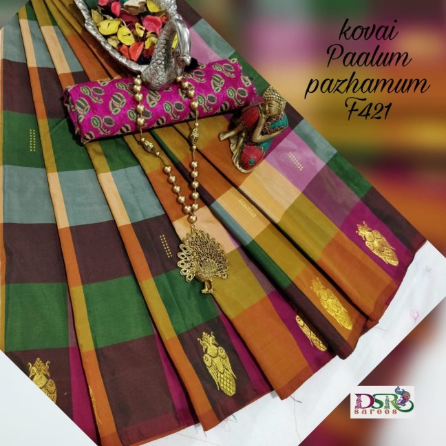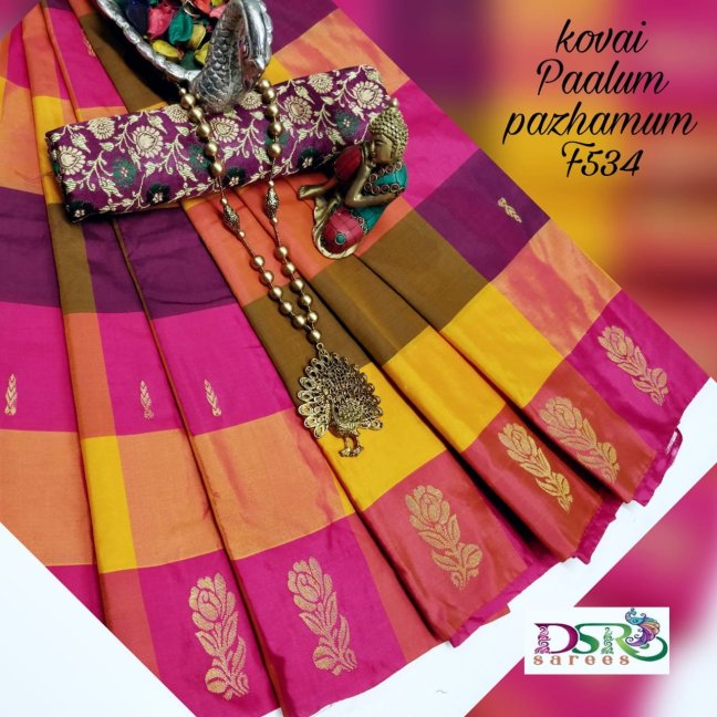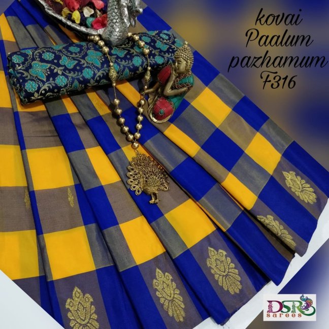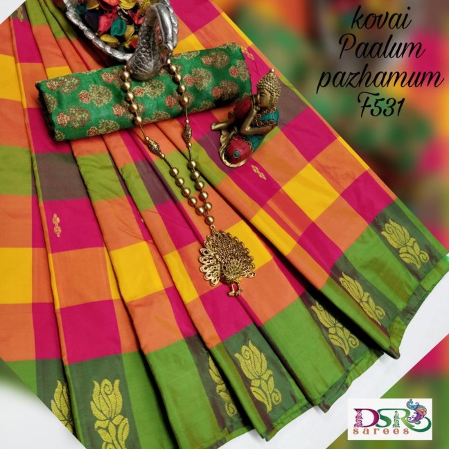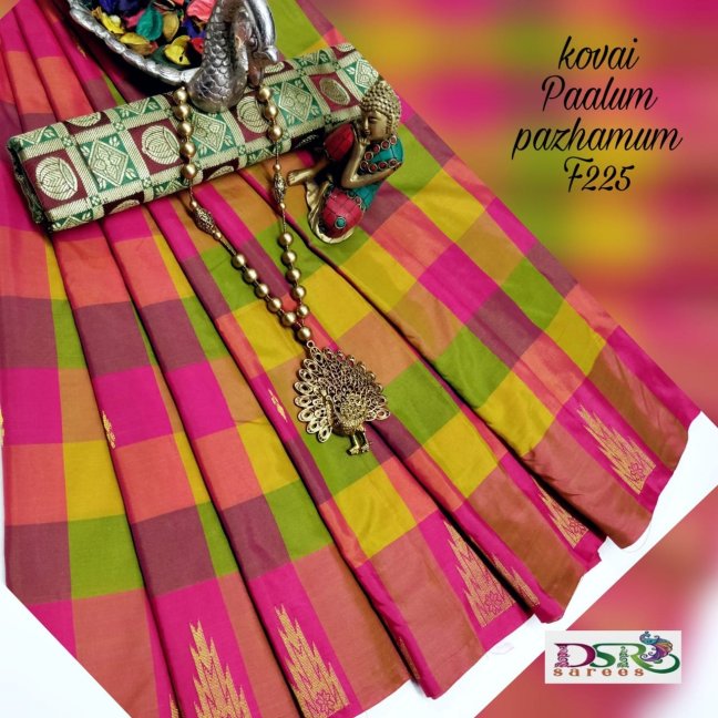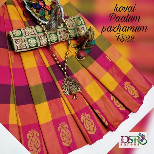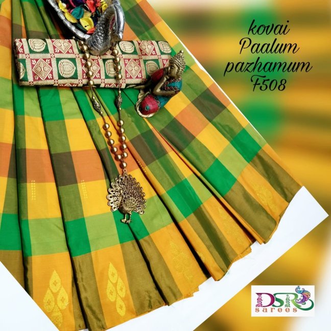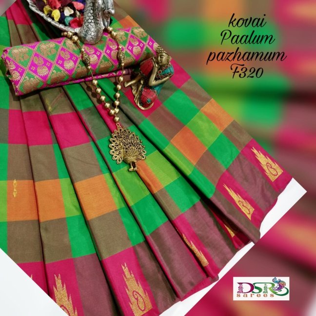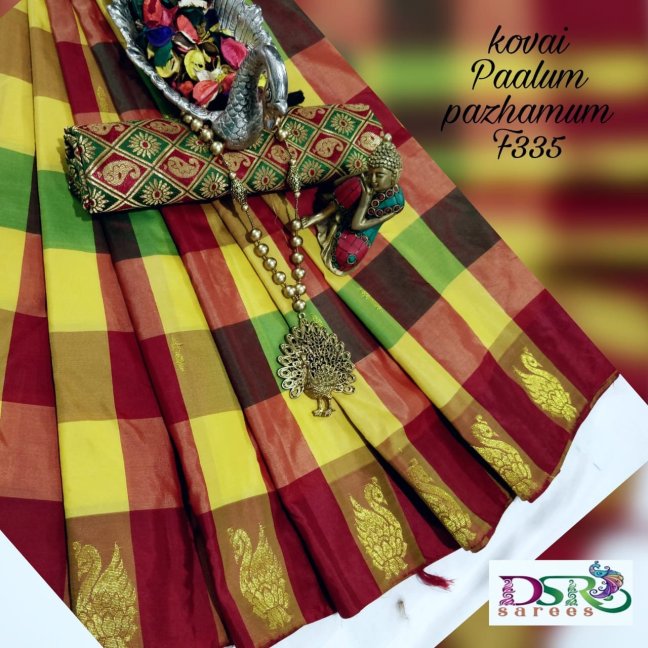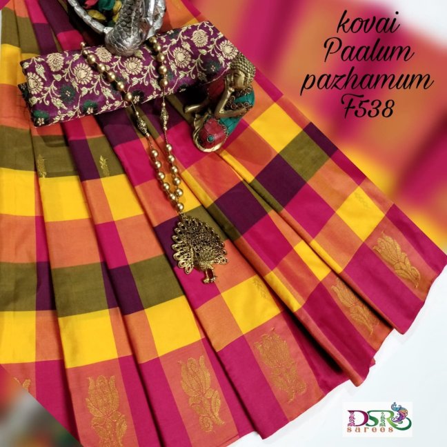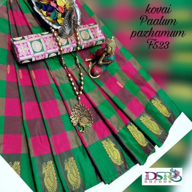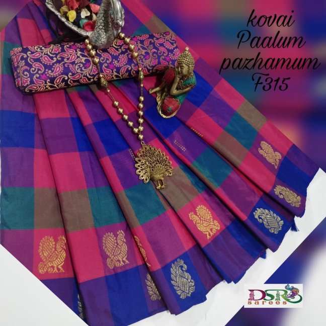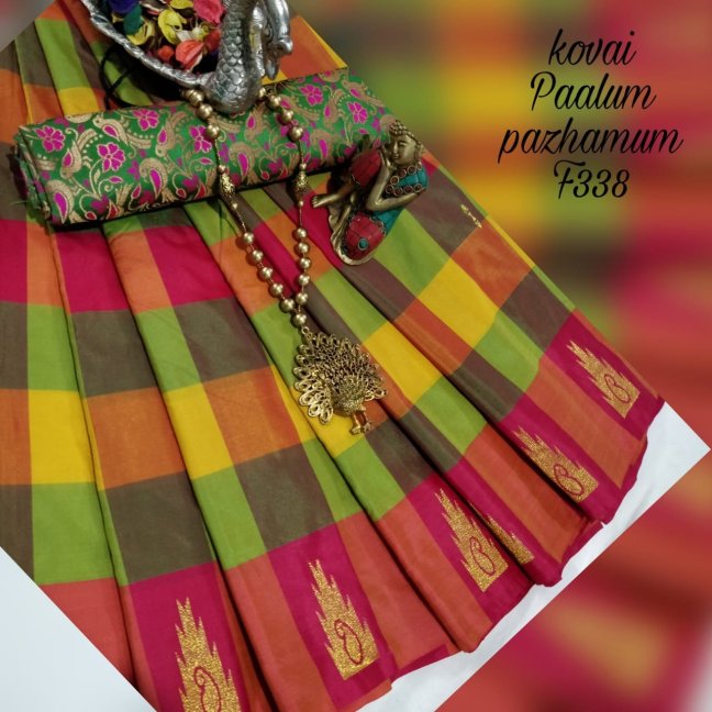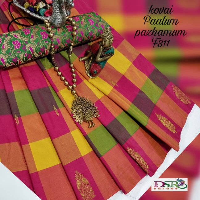 Arani/Kovai pattu, Checks now with contrast border n trendy border buttis..very silky soft n light weight Pattu..