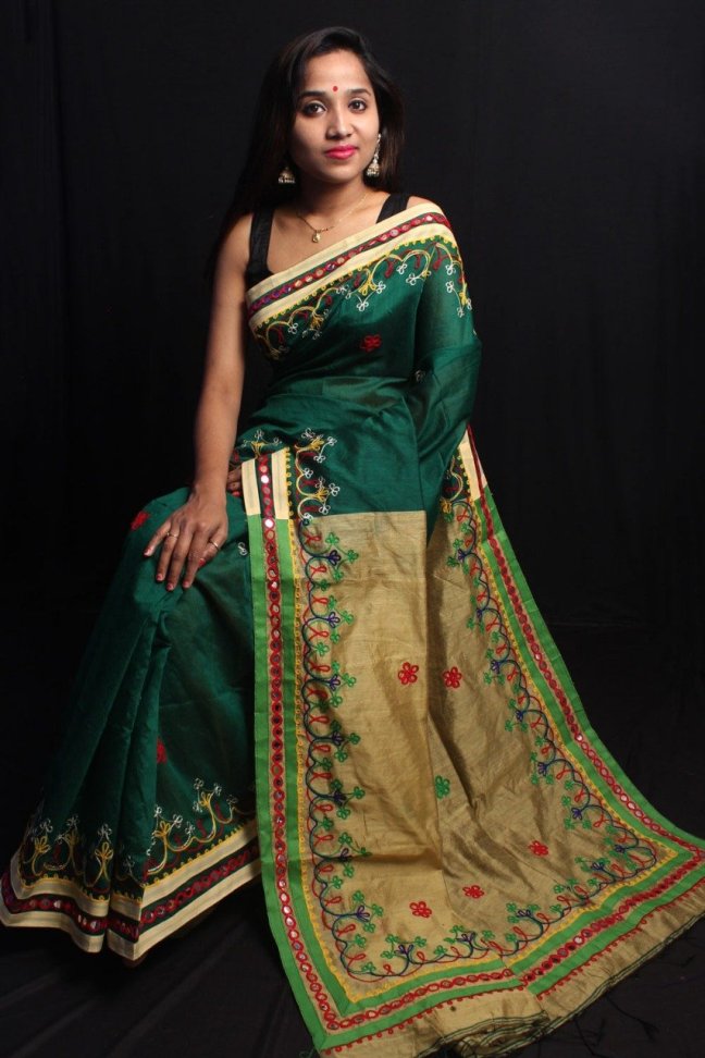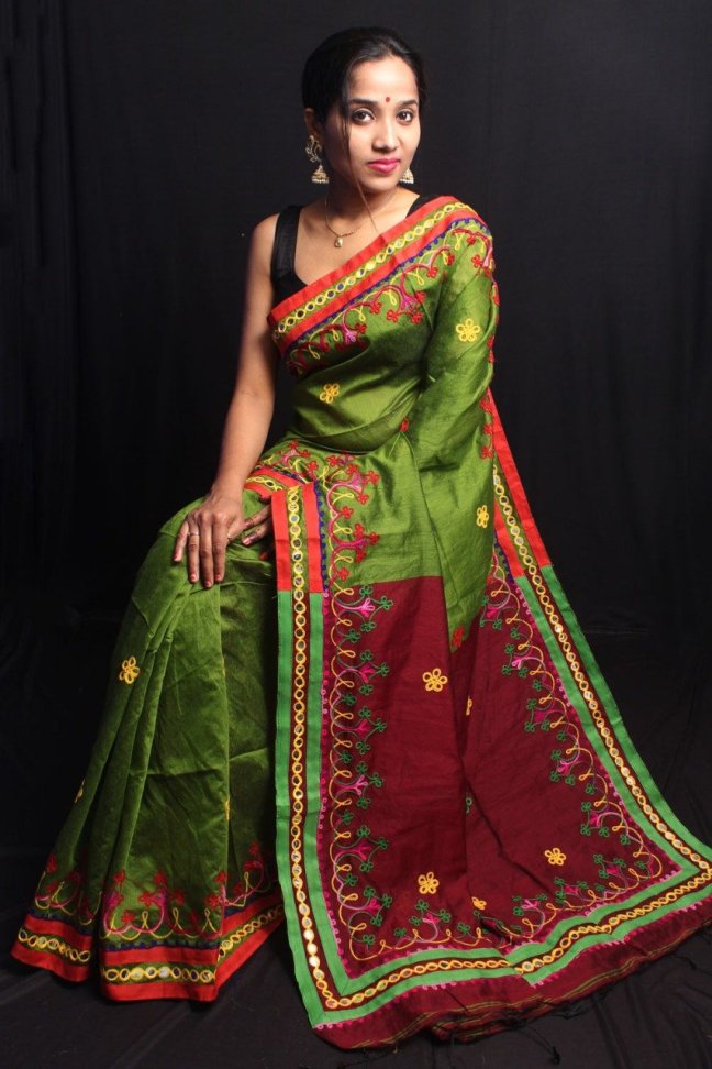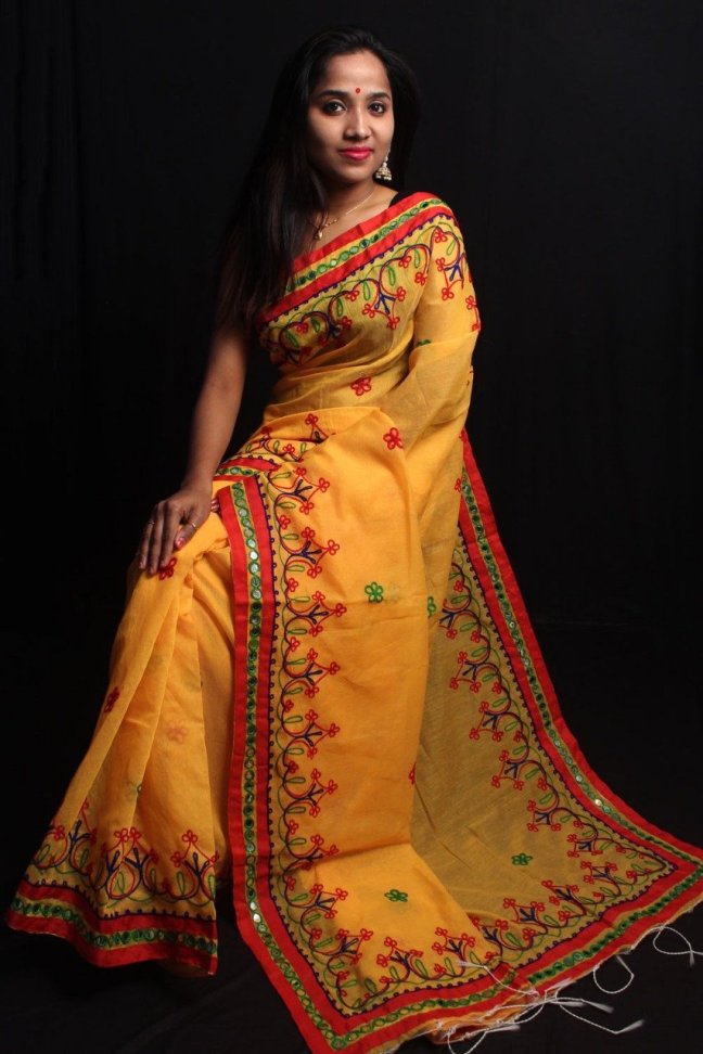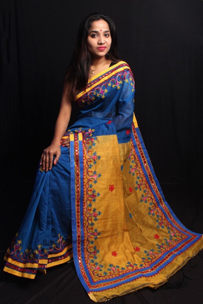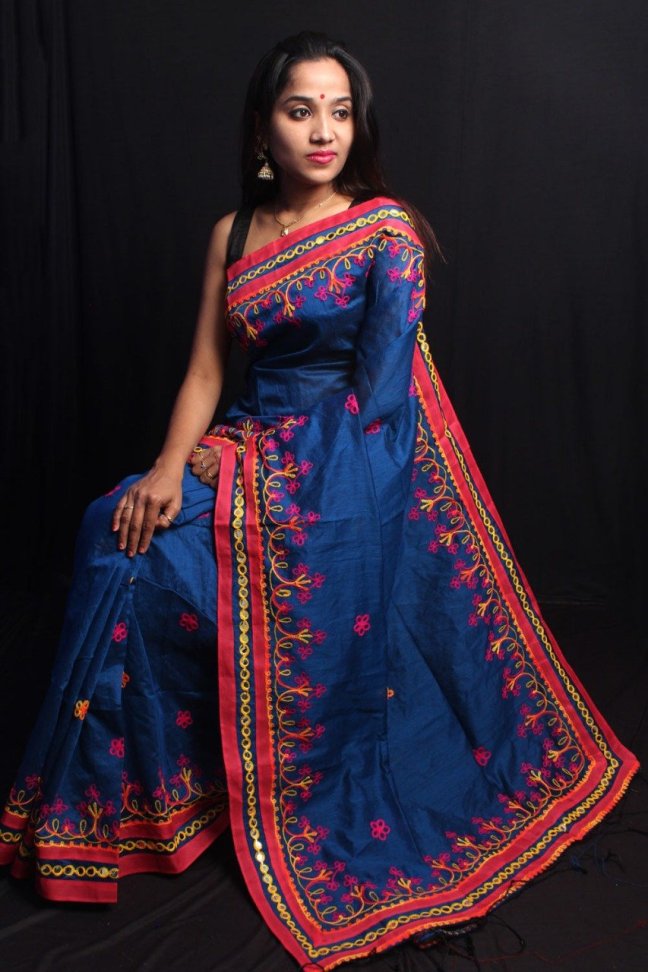 Cotton Silk Sarees Posted on March 3, 2019 by bendthetrend19 New Design Design– Foil mirror work.all body Woollen hand work . Febric—Handloom cotton silk SF B.P— Running B.P Price– 1075/- All ready to dispatch. Very Good quality. Single pc available. Normal Wash Share this: Share on Facebook (Opens in new window) Facebook Share on WhatsApp (Opens in new window) WhatsApp Email a link to a friend (Opens in new window) Email Share on LinkedIn (Opens in new window) LinkedIn Like Loading... Related