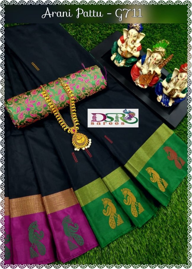 Gift ur special ones with this special collection…. Market hit Arani Pattu now with contrast border n trendy border buttis..very silky soft n light weight Pattu…