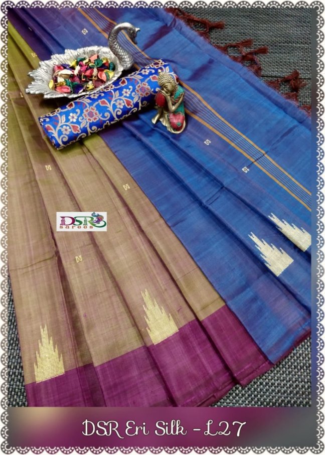 Traditional Eri silk sarees with traditional temple buttis and contrast pallu.. Traditional yet trendy.