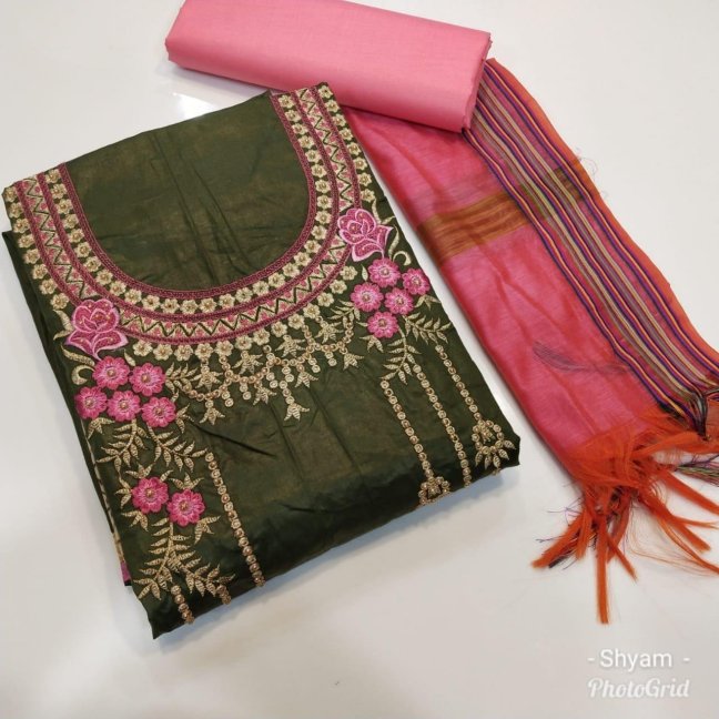 Cotton satin with EMBROIDERY Posted on March 23, 2019March 23, 2019 by bendthetrend19 Top – cotton satin with EMBROIDERY with DIAMOND Bottom – semi loan, Duptta – banarsi MC, Rate 899Cut – Top – 2.30 mtr, Bottom – 2 mtr Dupptta – 2.25 mtr Share this: Share on Facebook (Opens in new window) Facebook Share on WhatsApp (Opens in new window) WhatsApp Email a link to a friend (Opens in new window) Email Share on LinkedIn (Opens in new window) LinkedIn Like Loading... Related