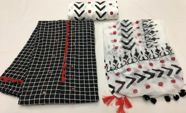 Cotton Suits Posted on March 30, 2019 by bendthetrend19 *TOP* Cotton jaipuri print miror *BOTTOM* cotton print DR *DUPP* Shiffon print *RATE* 1150/- Share this: Click to share on Facebook (Opens in new window) Facebook Click to share on WhatsApp (Opens in new window) WhatsApp Click to email a link to a friend (Opens in new window) Email Click to share on LinkedIn (Opens in new window) LinkedIn Like Loading... Related