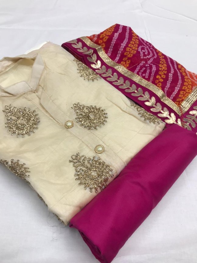 Chanderi Suits Posted on March 31, 2019 by bendthetrend19 Top chanderi with embro work and with santoon bottom with inner and dup bandini rate 999/- DR Share this: Click to share on Facebook (Opens in new window) Facebook Click to share on WhatsApp (Opens in new window) WhatsApp Click to email a link to a friend (Opens in new window) Email Click to share on LinkedIn (Opens in new window) LinkedIn Like Loading... Related