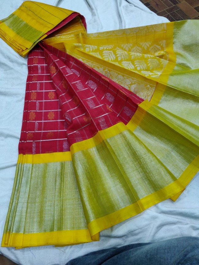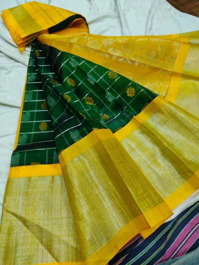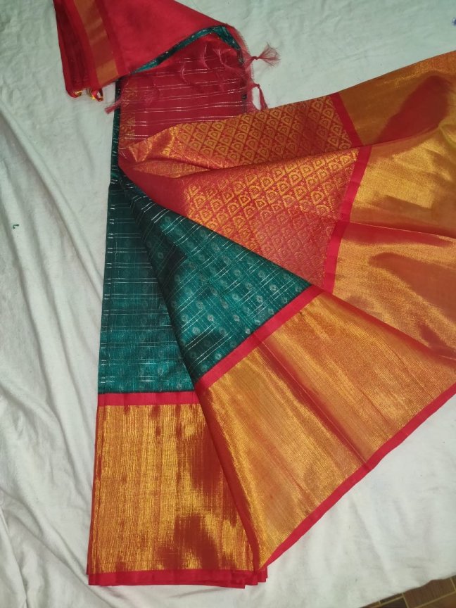 Kuppadam Pattu Sarees Posted on March 31, 2019 by bendthetrend19 Kuppadam Pattu sarees with big zari kadi border All over body full check buta Rich pallu Contrast blouse DR Price : 5800/- Share this: Click to share on Facebook (Opens in new window) Facebook Click to share on WhatsApp (Opens in new window) WhatsApp Click to email a link to a friend (Opens in new window) Email Click to share on LinkedIn (Opens in new window) LinkedIn Like Loading... Related