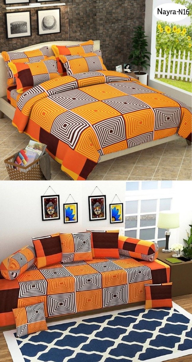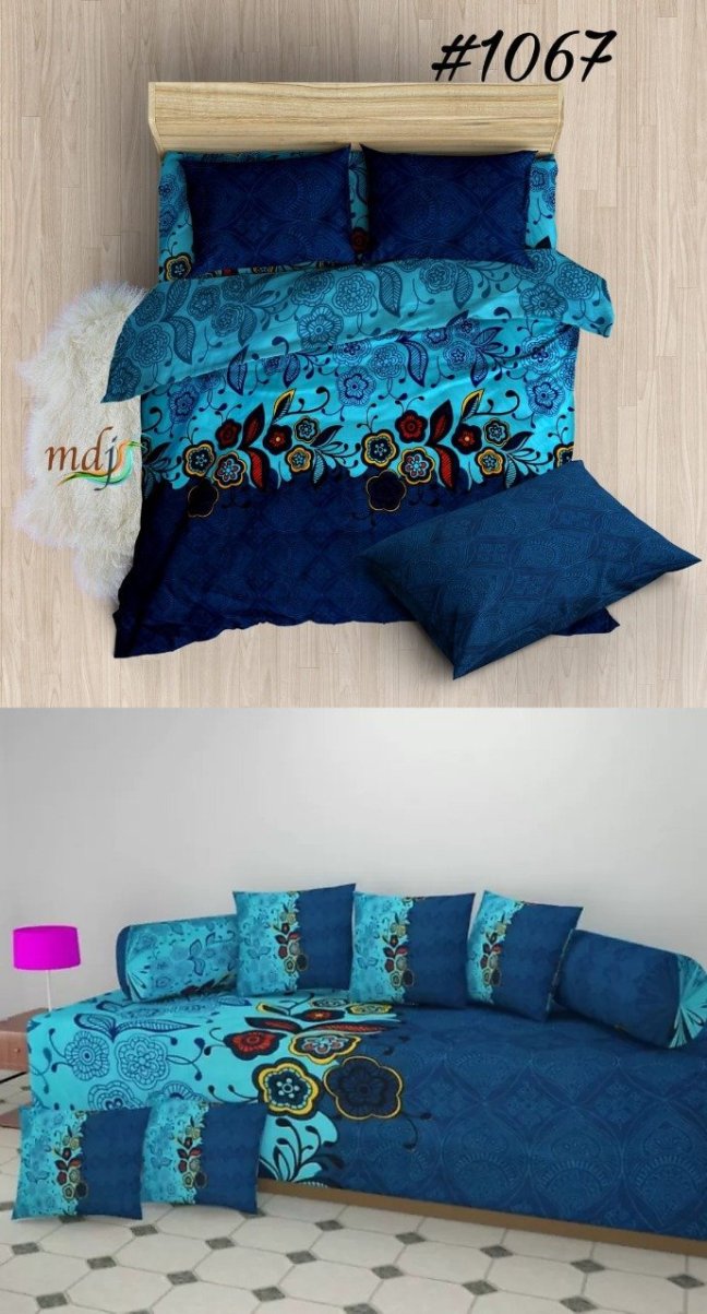 *one diwan set with two bonster covers and five cushion* covers(1+2+5) 16*16