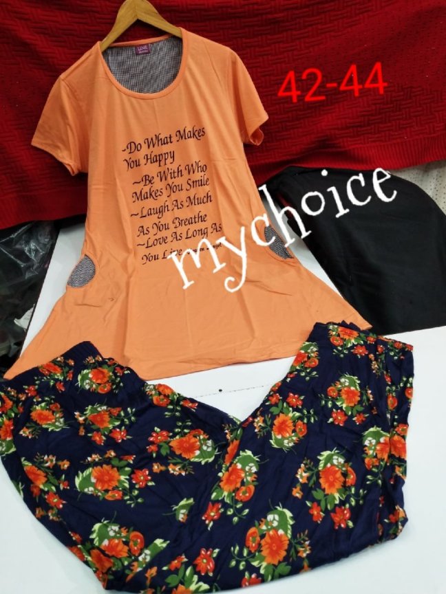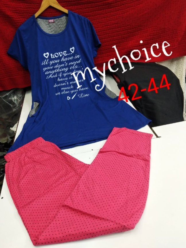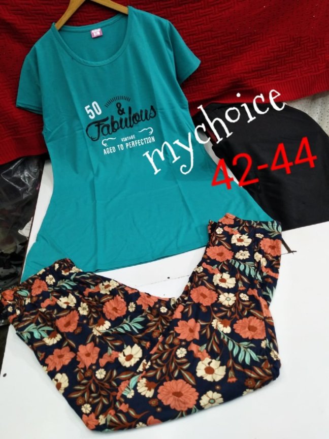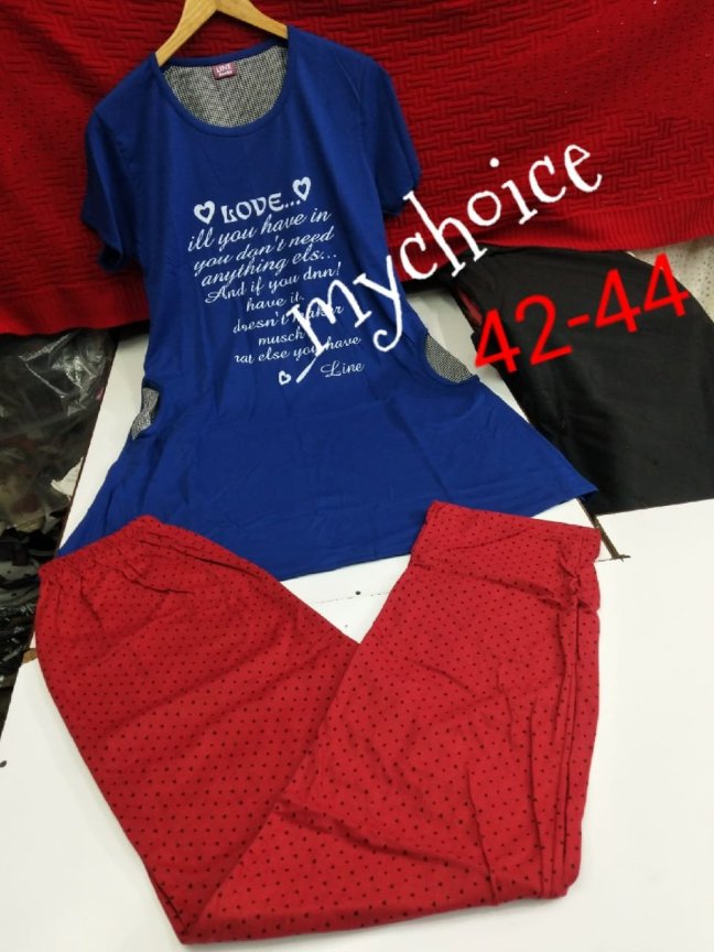 Pyjama Sets Posted on April 5, 2019 by bendthetrend19 Fusion *My choice Beautiful women sleepwear* Beautiful Pajama sets *Free size for 42 -44 size* *Stuff : fine cotton hoisery*PV *Just @750/- free ship* Share this: Share on Facebook (Opens in new window) Facebook Share on WhatsApp (Opens in new window) WhatsApp Email a link to a friend (Opens in new window) Email Share on LinkedIn (Opens in new window) LinkedIn Like Loading... Related