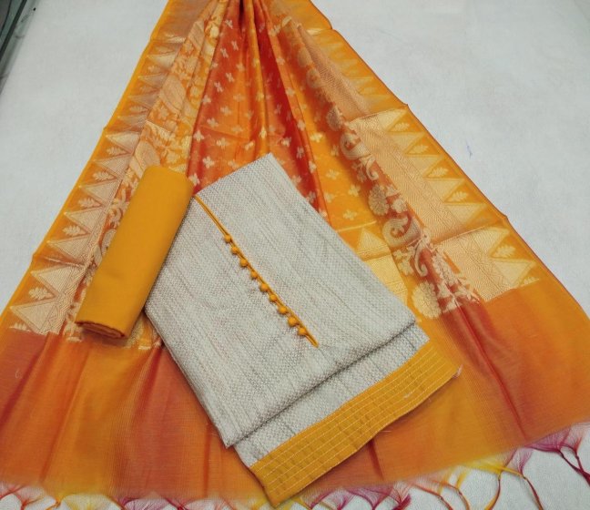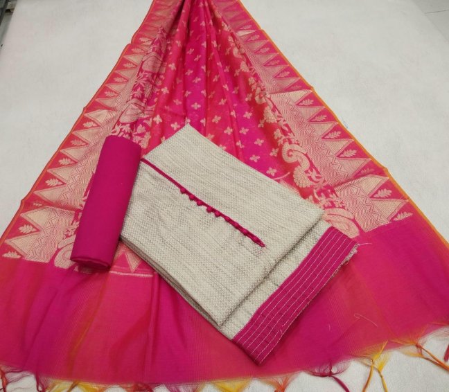 Chanderi Silk Suits Posted on April 9, 2019 by bendthetrend19 *Top* : chanderi silk jekard *Bottom* : cotton( 2mtr) DR *Duptta* : banarsi jekard with border (2.30mtr ) *Price:1050/- Single available Share this: Click to share on Facebook (Opens in new window) Facebook Click to share on WhatsApp (Opens in new window) WhatsApp Click to email a link to a friend (Opens in new window) Email Click to share on LinkedIn (Opens in new window) LinkedIn Like Loading... Related