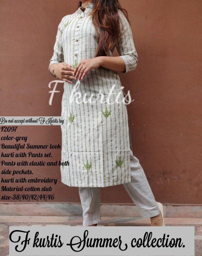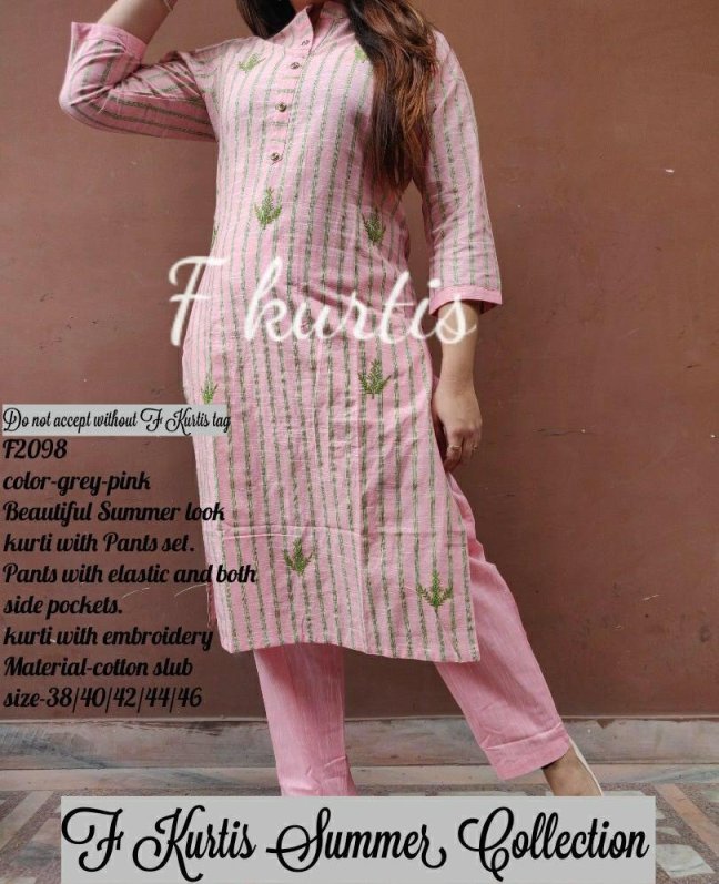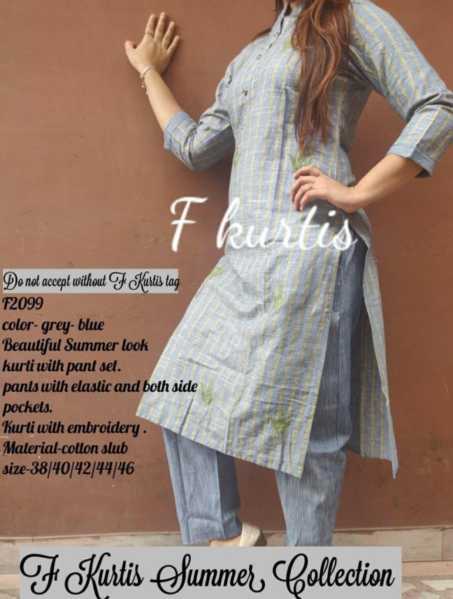 Kurti With Pant Posted on April 24, 2019 by bendthetrend19 *F2097, F2098, F2099* _*Beautiful Summer look kurti with pant set.pants with elastic and both side pockets. Kurti with MD embroidery ._* Material-cotton slub size-38/40/42/44/46 Price-1275/- Ready to despatch Share this: Click to share on Facebook (Opens in new window) Facebook Click to share on WhatsApp (Opens in new window) WhatsApp Click to email a link to a friend (Opens in new window) Email Click to share on LinkedIn (Opens in new window) LinkedIn Like Loading... Related
