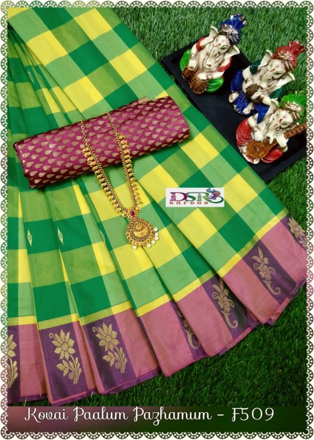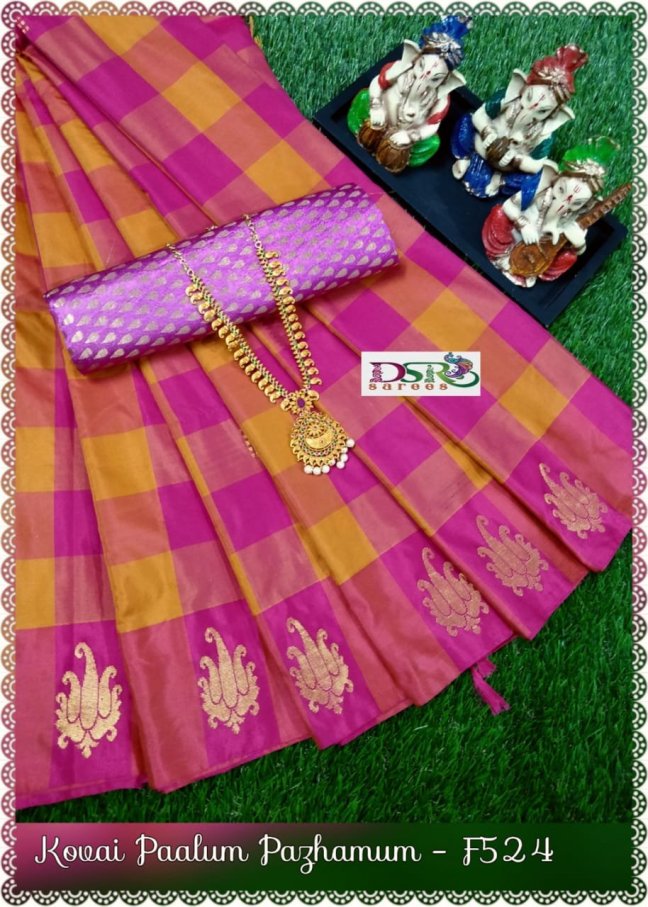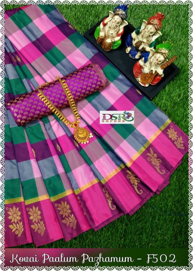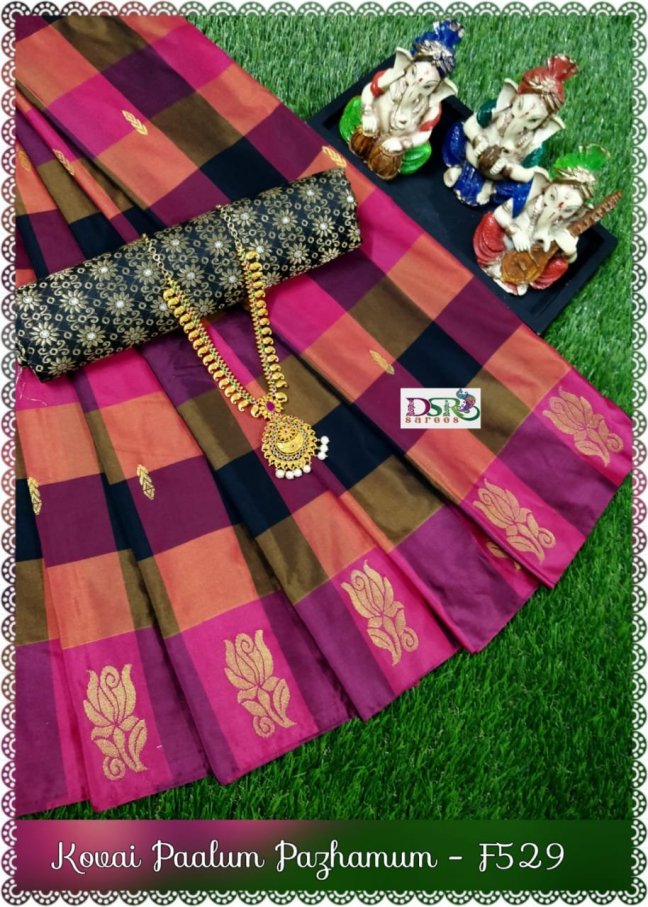 Gift ur special ones with this special collection…. Market hit Arani/Kovai checks now with contrast border n trendy border buttis..very silky soft n light weight Pattu..