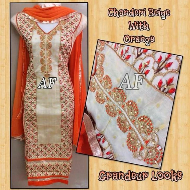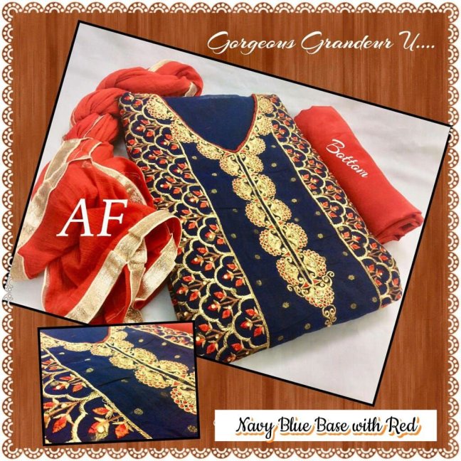 *WOW* Chanderi Top with Beautiful Heavy Sequence Work Highlighted with Stones. Includes Inner Lining Cloth for top. Santoon Bottom. Chiffon Dupatta with sides Peppy piping. RS.899/-*FREE SHIPPING🎉WOW