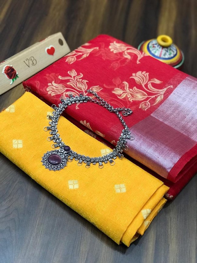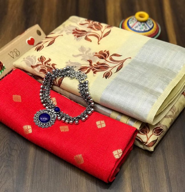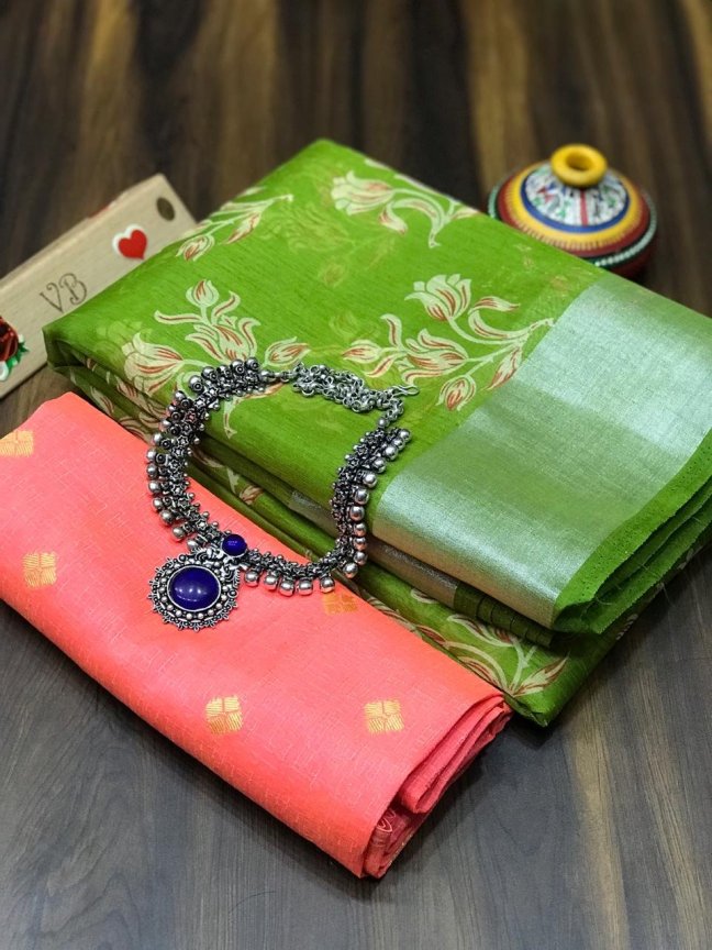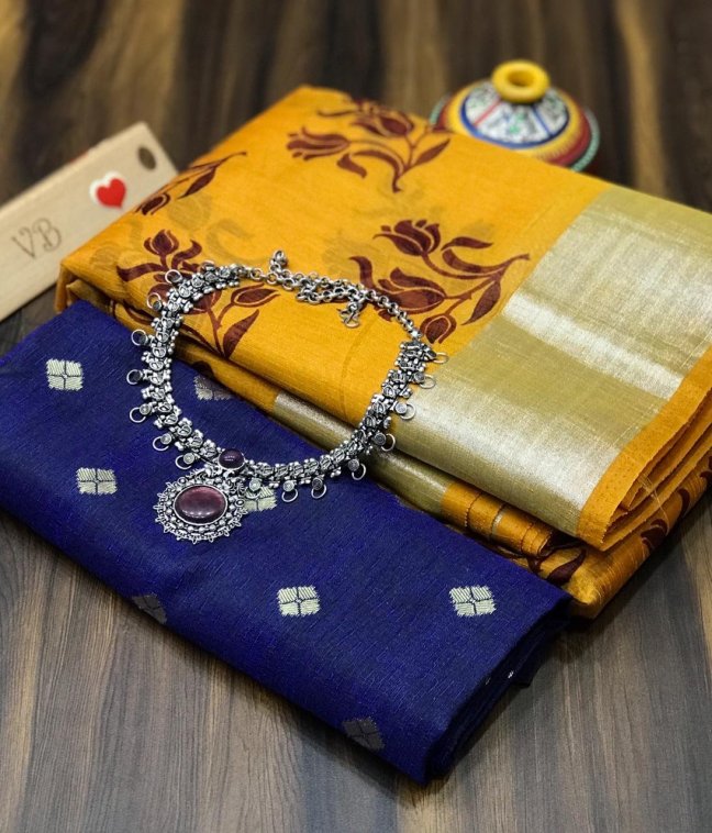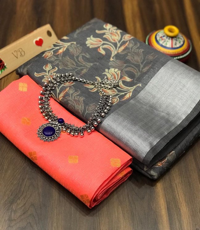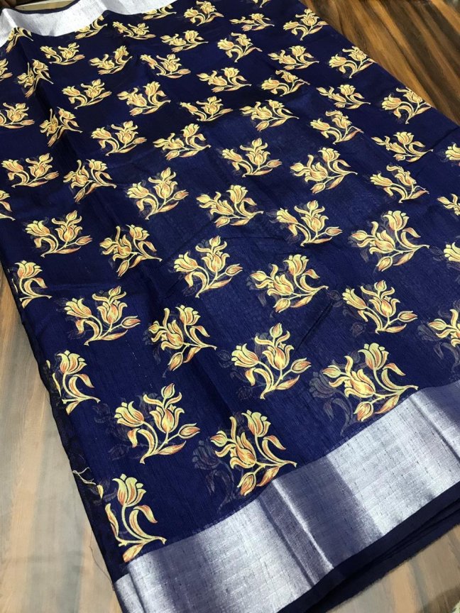*Material- Resham tussar silk with floral printed silver jari sarees