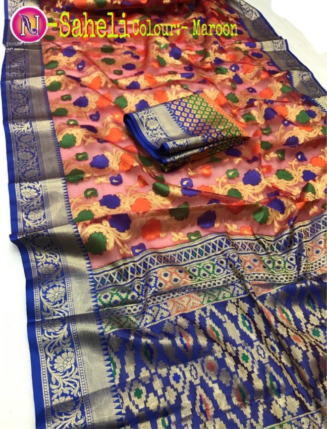 Soft Silk Sarees Posted on June 7, 2019 by bendthetrend19 Details:- Banarasi Handloom Weaving *soft* Silk Saree LA *With Rich contrast Pallu N Rich Heavy Border* With Plain contrast Running Blouse n All Over Zari & mina Weaves 👉🏻Colours:- 4👈🏻 *Rate:- 1250/- Share this: Click to share on Facebook (Opens in new window) Facebook Click to share on WhatsApp (Opens in new window) WhatsApp Click to email a link to a friend (Opens in new window) Email Click to share on LinkedIn (Opens in new window) LinkedIn Like Loading... Related