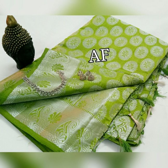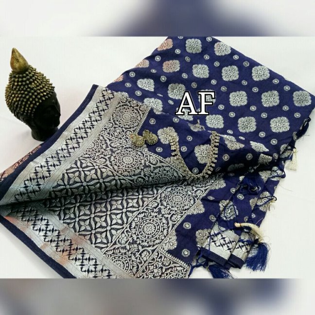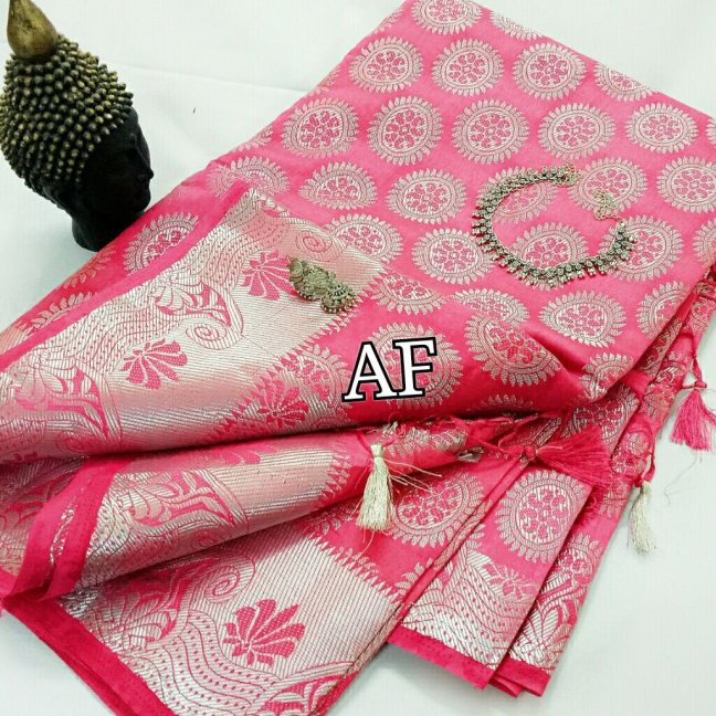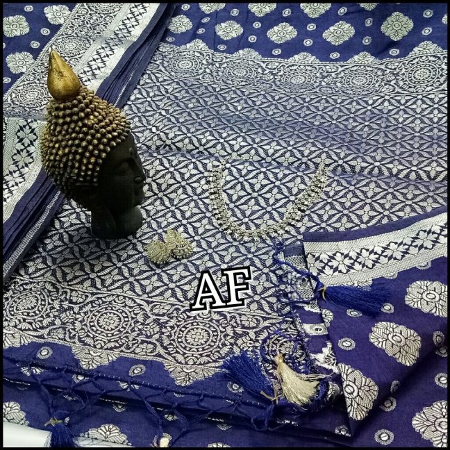Perfect Gorgeous Drape* Kashmiri Silk with full silver Zari Weaving Craftsmanship..the pattern of weave speaks the classic beauty..includes running blouse..Wow Grand Pallu with TUSSELS…Rs.1500