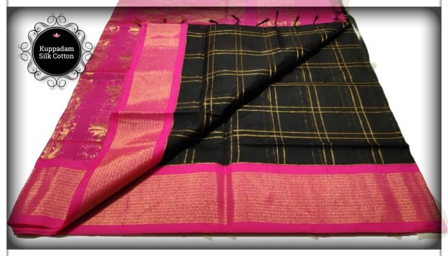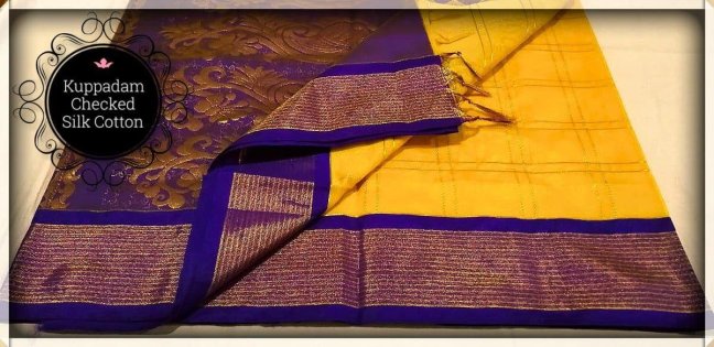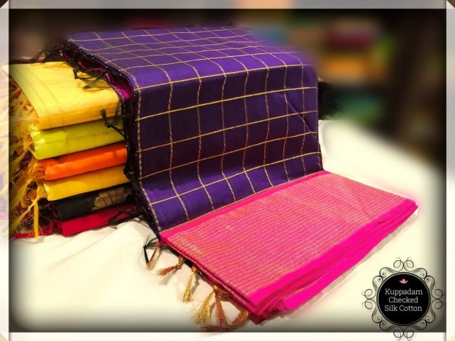 EXCLUSIVE RICH KUPPADAM SILK COTTON *TRENDING CHECKED* SAREES WITH RICH/CONTRAST PALLU AND CONTRAST BLOUSE. SF