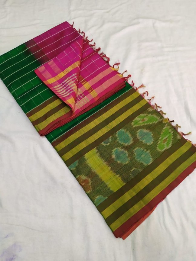 Paaturi pattu sarees Posted on July 8, 2019 by bendthetrend19 Paaturi pattu sarees DR with all over body zari checks, Big pochampally border with Contrast Pallu & Blouse Price : 3000 Share this: Click to share on Facebook (Opens in new window) Facebook Click to share on WhatsApp (Opens in new window) WhatsApp Click to email a link to a friend (Opens in new window) Email Click to share on LinkedIn (Opens in new window) LinkedIn Like Loading... Related