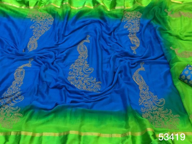 Nazim Chiffon Sarees Posted on August 21, 2019 by bendthetrend19 *Brand new design* *Pure Nazim chiffon 2.O* *With satin soft boder with jari out* *Line* *With rim zim rich pallu with full work * *With contrast jeqard blouse* *Available in multiples* SF 1050/- Share this: Click to share on Facebook (Opens in new window) Facebook Click to share on WhatsApp (Opens in new window) WhatsApp Click to email a link to a friend (Opens in new window) Email Click to share on LinkedIn (Opens in new window) LinkedIn Like Loading... Related