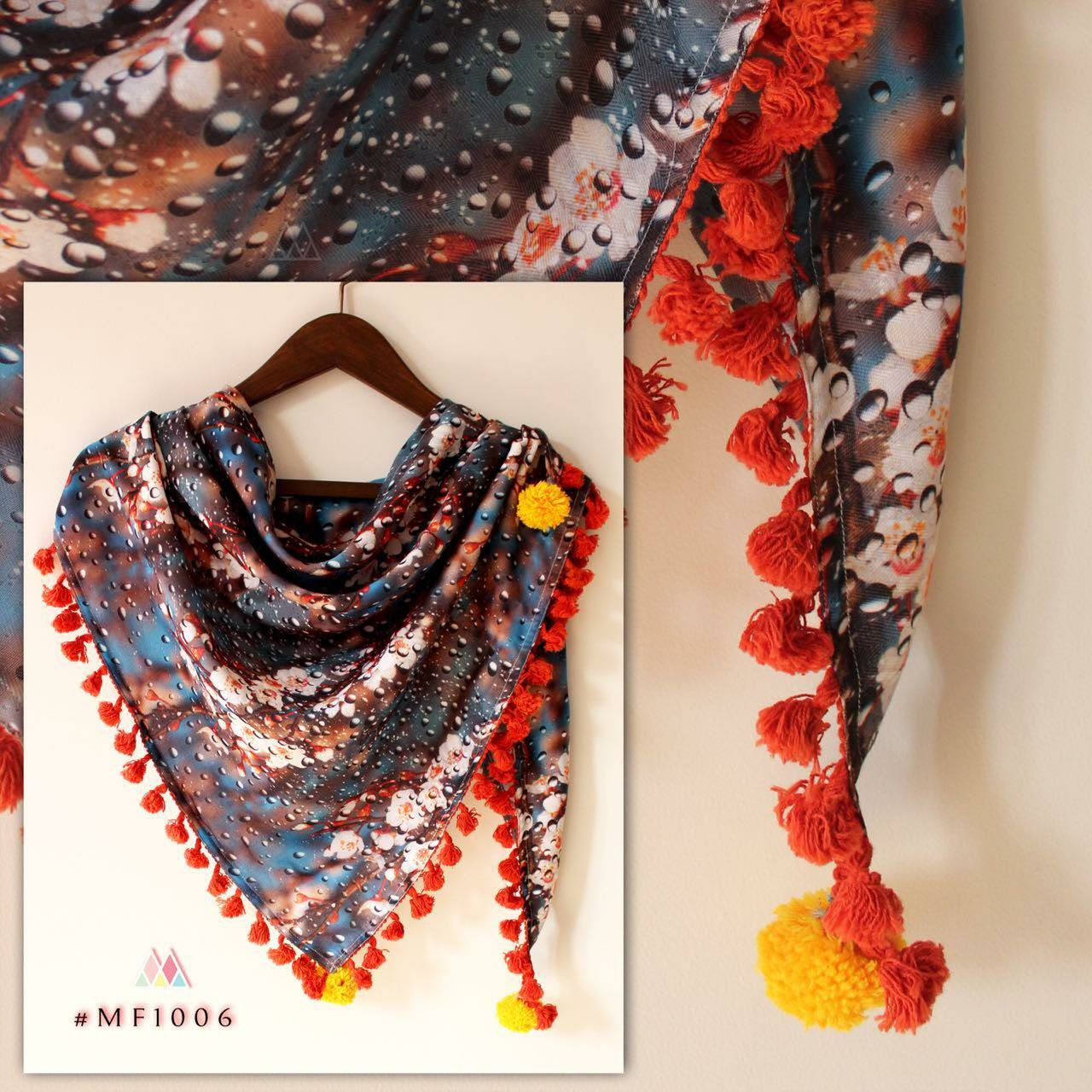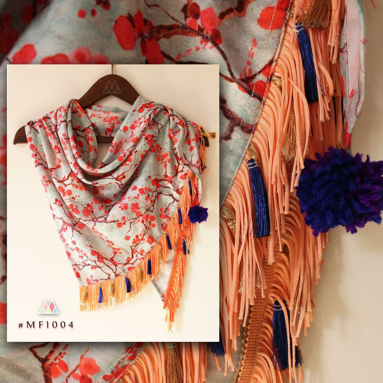 Hanging tazzel laces ,pompom laces , and woollen pompoms attached .