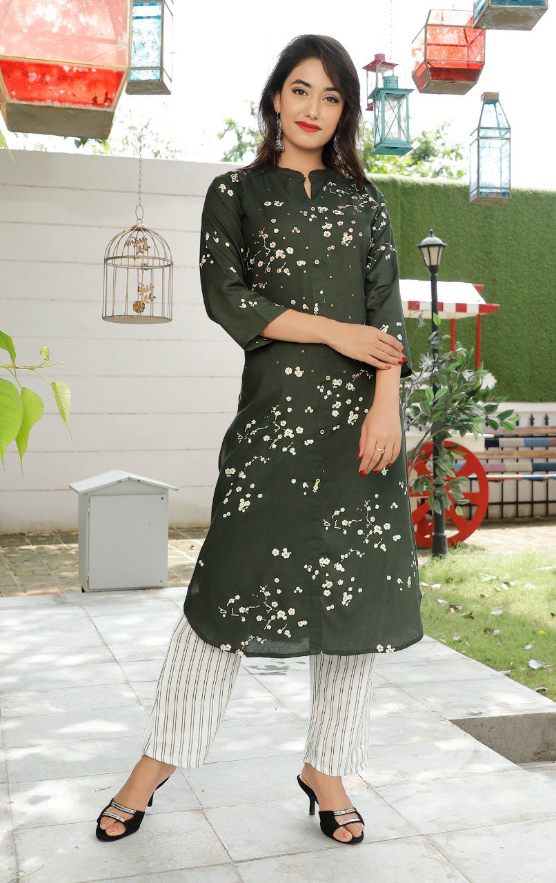 Rayon Kurti With Pant Posted on August 25, 2020 by bendthetrend19 Rayon kurti with hand work and rayon flex stripe pant…38 to 44 and 48 to 54 sizes… single color JMPrice 850/- Share this: Click to share on Facebook (Opens in new window) Facebook Click to share on WhatsApp (Opens in new window) WhatsApp Click to email a link to a friend (Opens in new window) Email Click to share on LinkedIn (Opens in new window) LinkedIn Like Loading... Related
