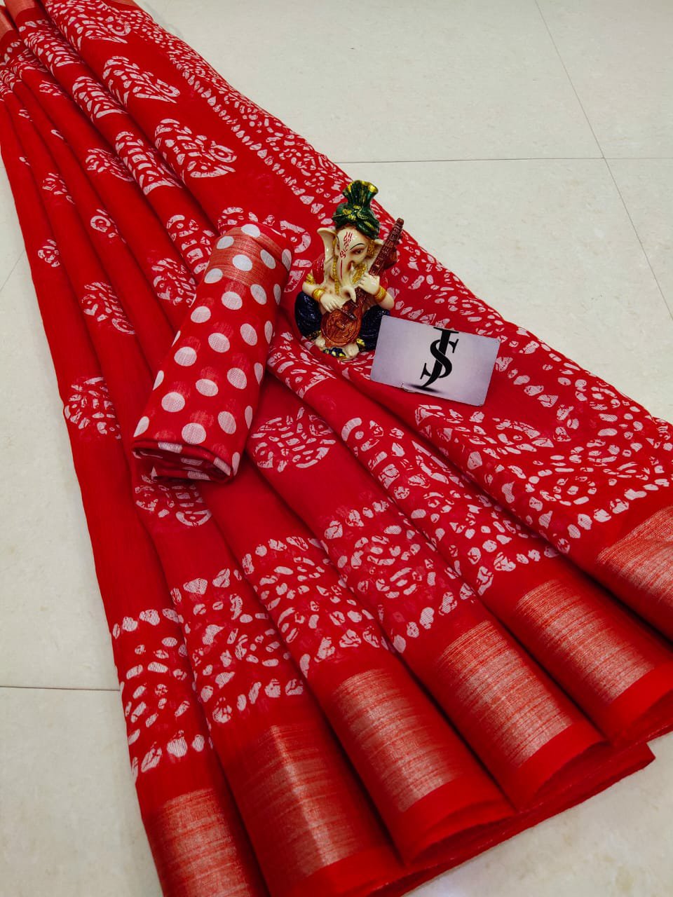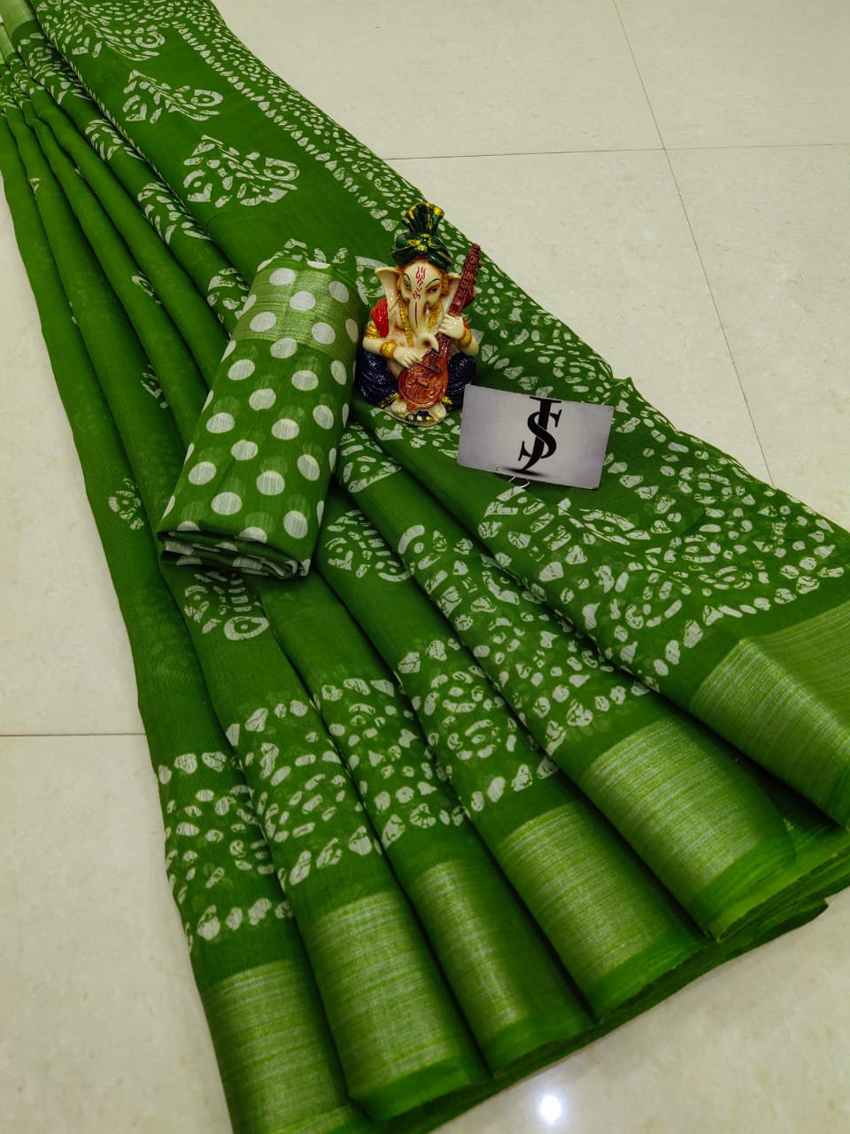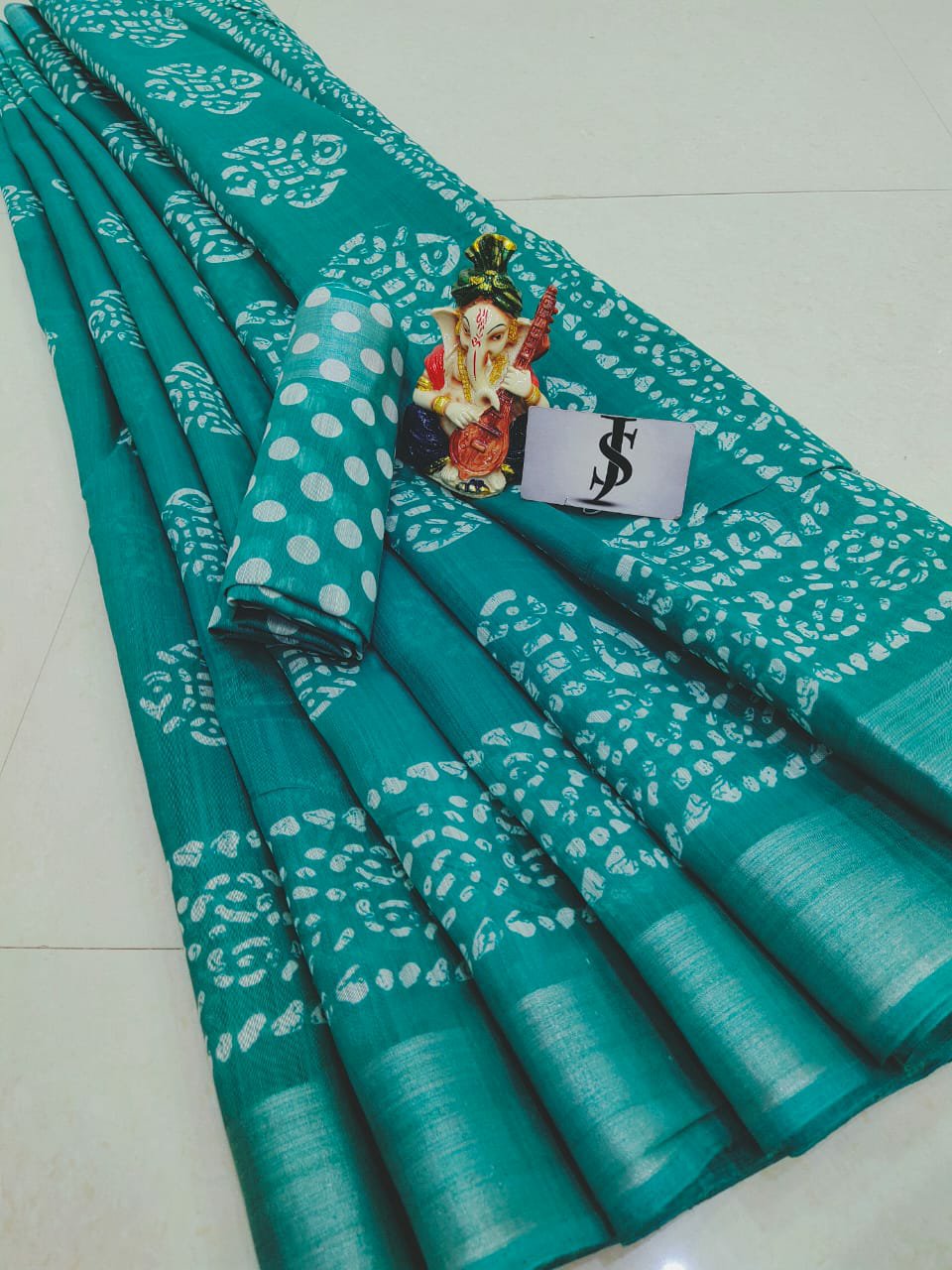 Chanderi Cotton Sarees Posted on August 29, 2020 by bendthetrend19 Soft Chanderi cotton sareeSilver double side borderBatik printsRunning polka dotted Blouse attached 01 @ Price: 850/- Offer price Share this: Click to share on Facebook (Opens in new window) Facebook Click to share on WhatsApp (Opens in new window) WhatsApp Click to email a link to a friend (Opens in new window) Email Click to share on LinkedIn (Opens in new window) LinkedIn Like Loading... Related