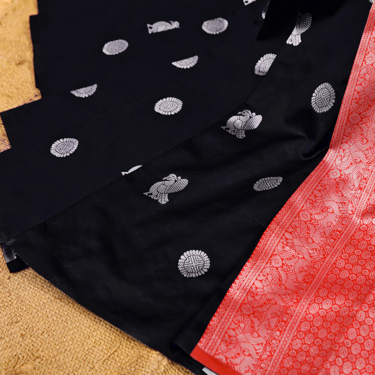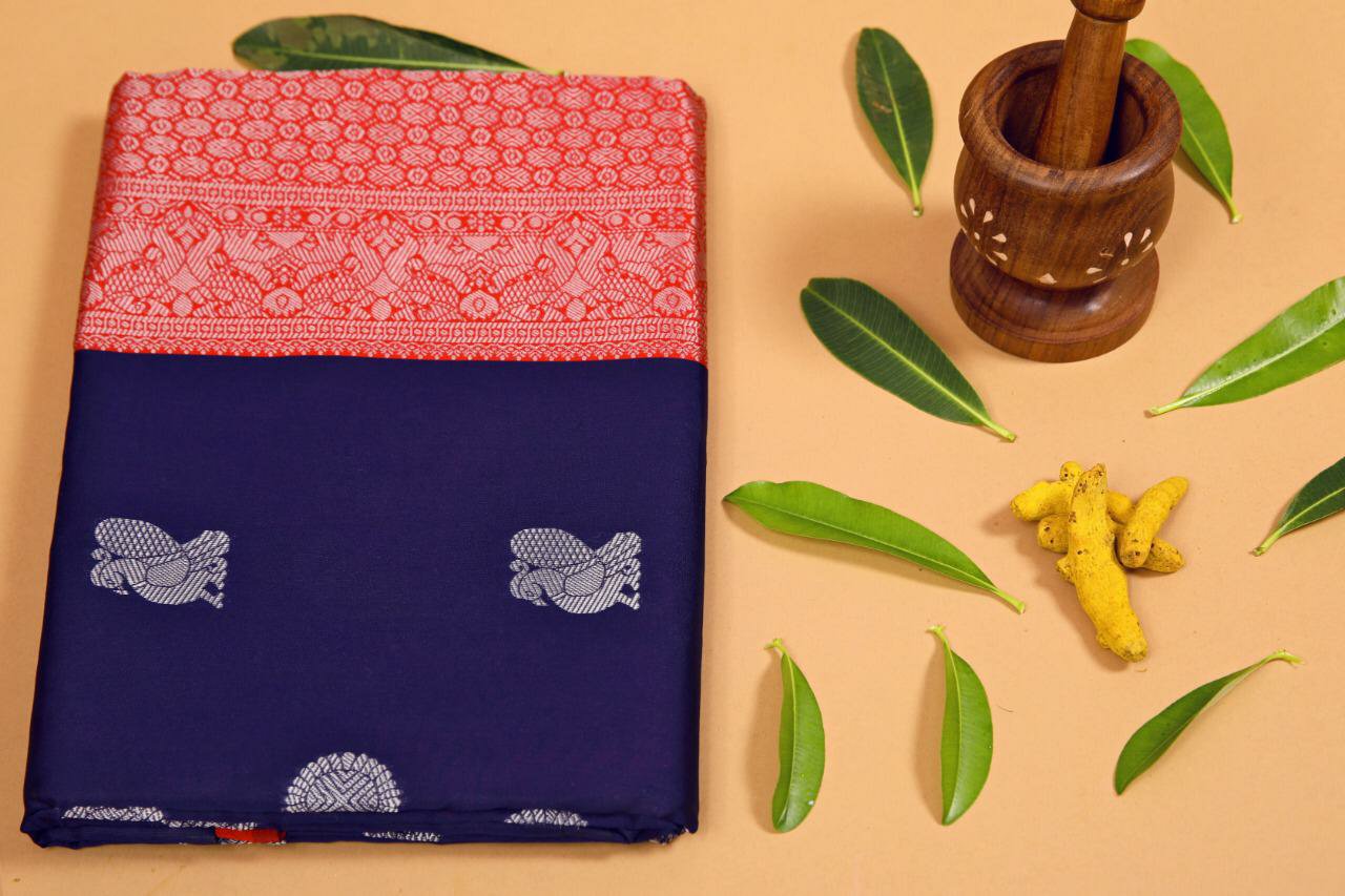 In an enamoring confluence of NAVY-BLUE and Aqua-green, this Kanchipuram Silk Saree is a glamorous addition to your wardrobe!05