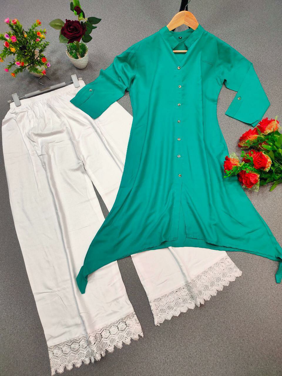Rayon Kurti Plazzo Set Posted on October 5, 2020October 5, 2020 by bendthetrend19 Triva Kurti : 14 kg. RayonKurti length:- 43+ Inch Plazzo :14 kg. Rayon with lace( Elastic waist )Plazzo Length :- 42+ inch 03 🌷Rate 999/- free shipping Type : Fully Stitched Size : M:38L:40″XL:42″XXL:44 Share this: Click to share on Facebook (Opens in new window) Facebook Click to share on WhatsApp (Opens in new window) WhatsApp Click to email a link to a friend (Opens in new window) Email Click to share on LinkedIn (Opens in new window) LinkedIn Like Loading... Related