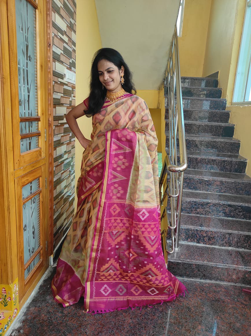 THIS STUNNING NATURAL SILK WITH SPECTACULAR BUTTAS, ITS RADIANCE COLOUR COMBINATION WITH RICH CONTRAST PALLU AND BLOUSE GIVES THE ADDITIONAL BEAUTY. 07
