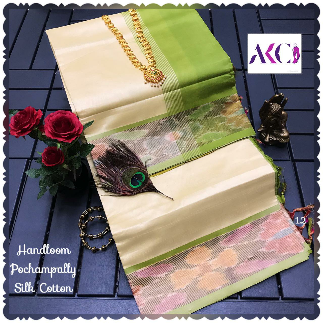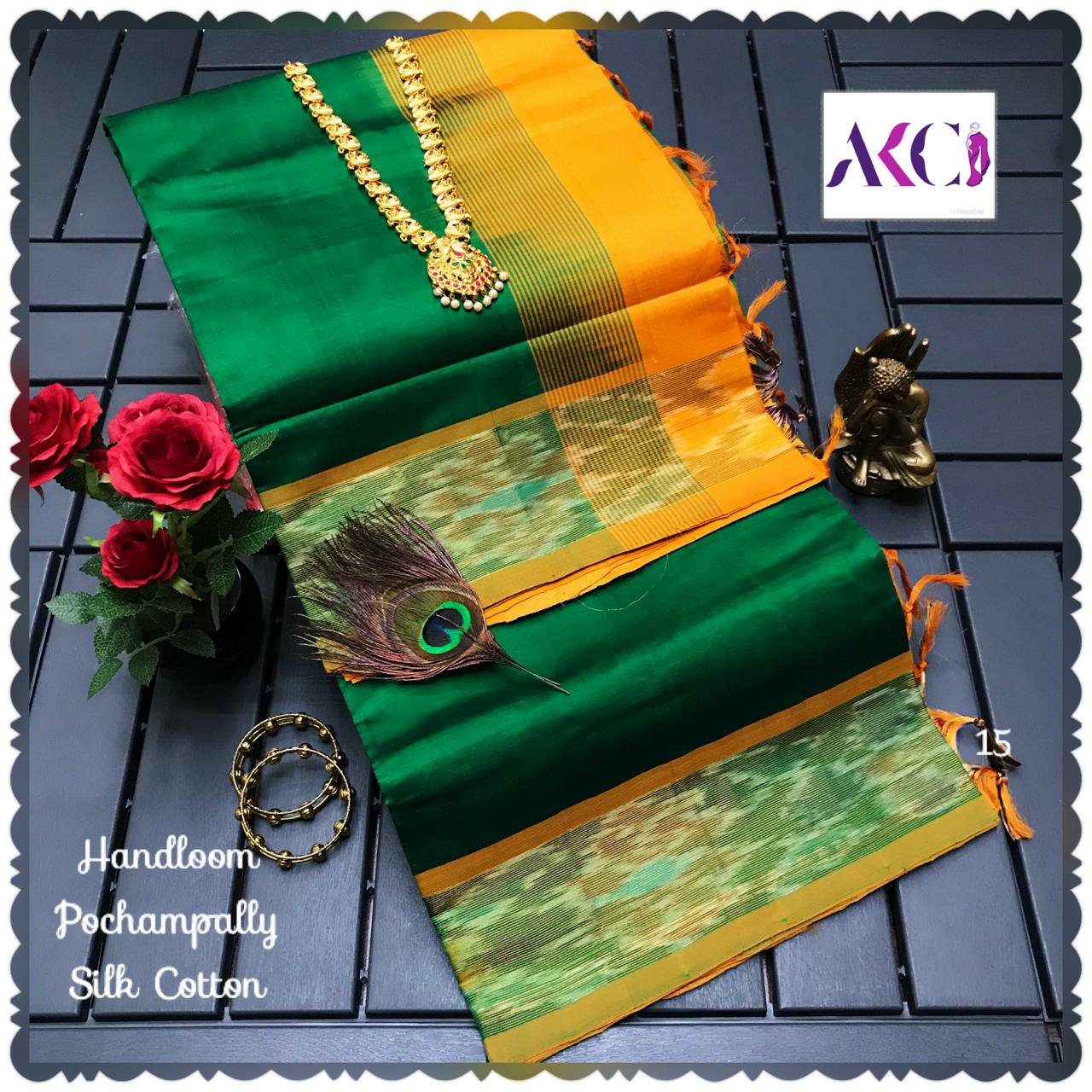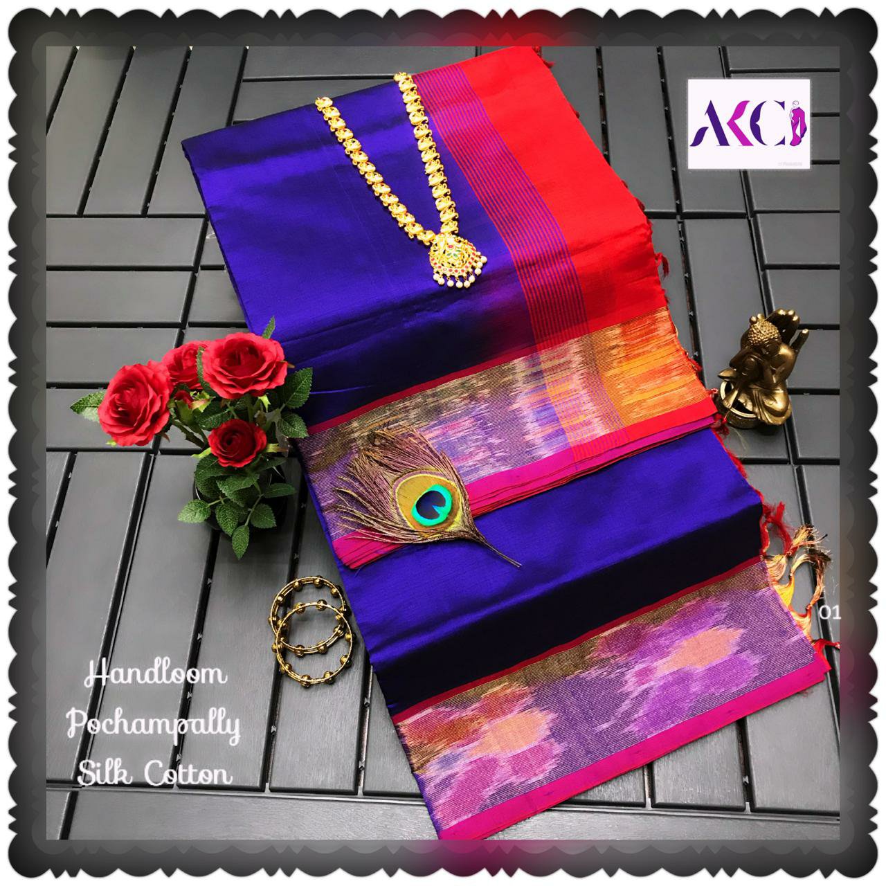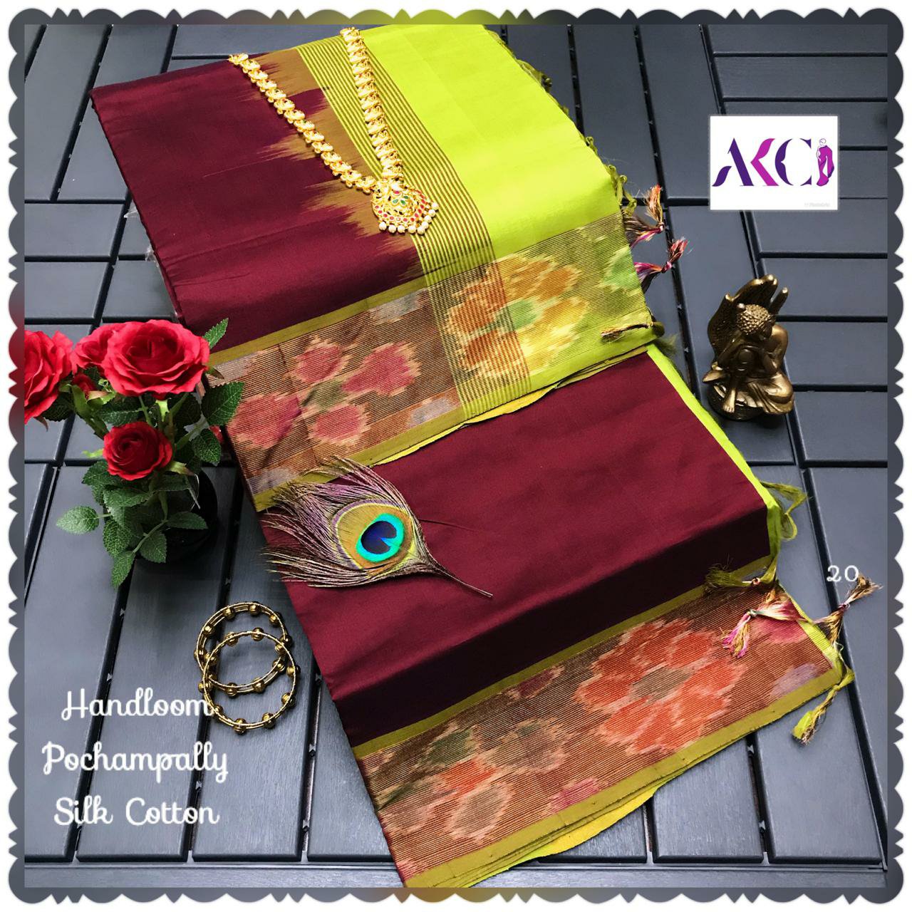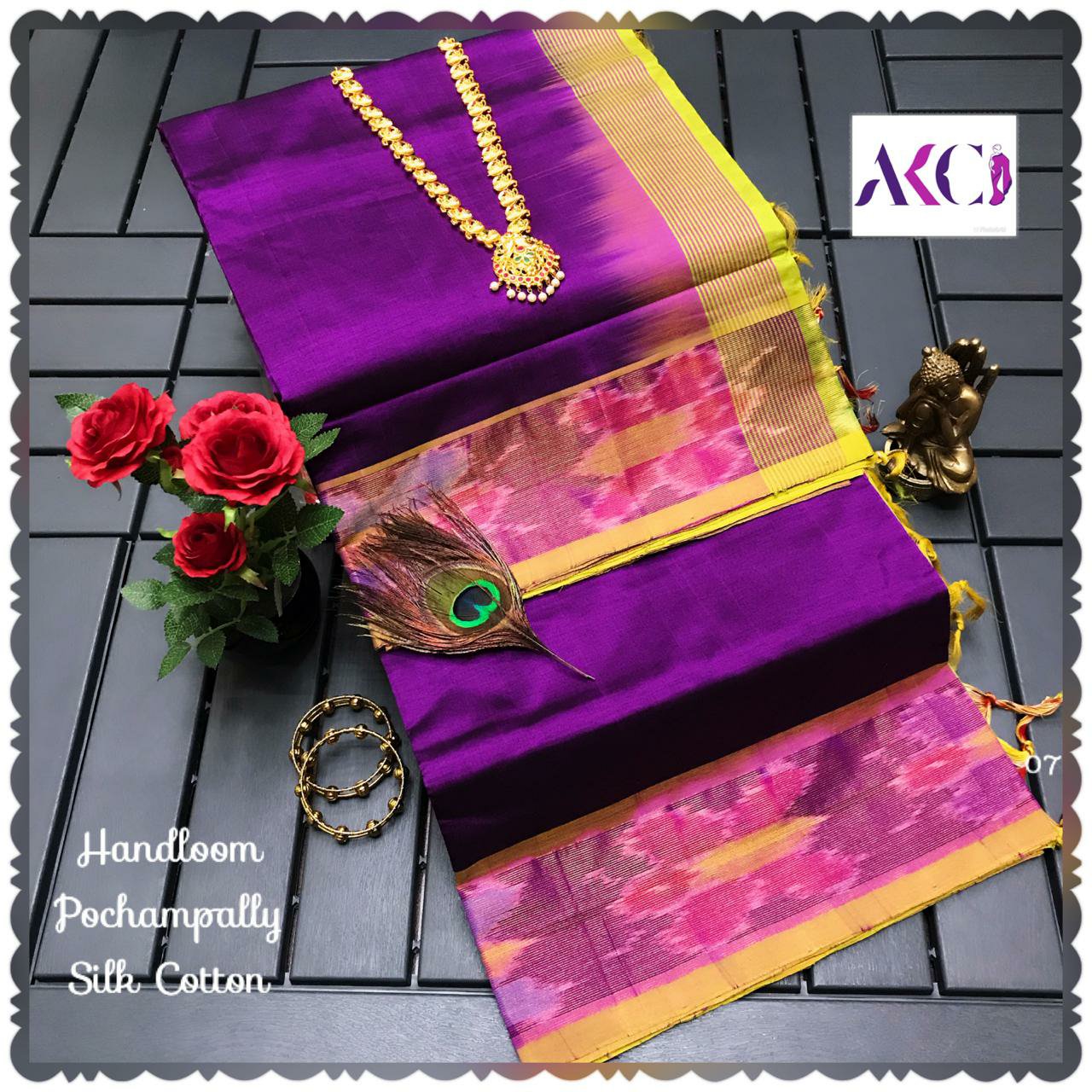 These handloom Sarees are weaved with lavishing Color combination to make u look elegant and traditional with contrast Pallu and double side pochampally border 01