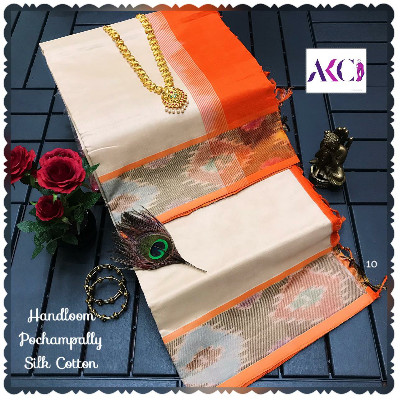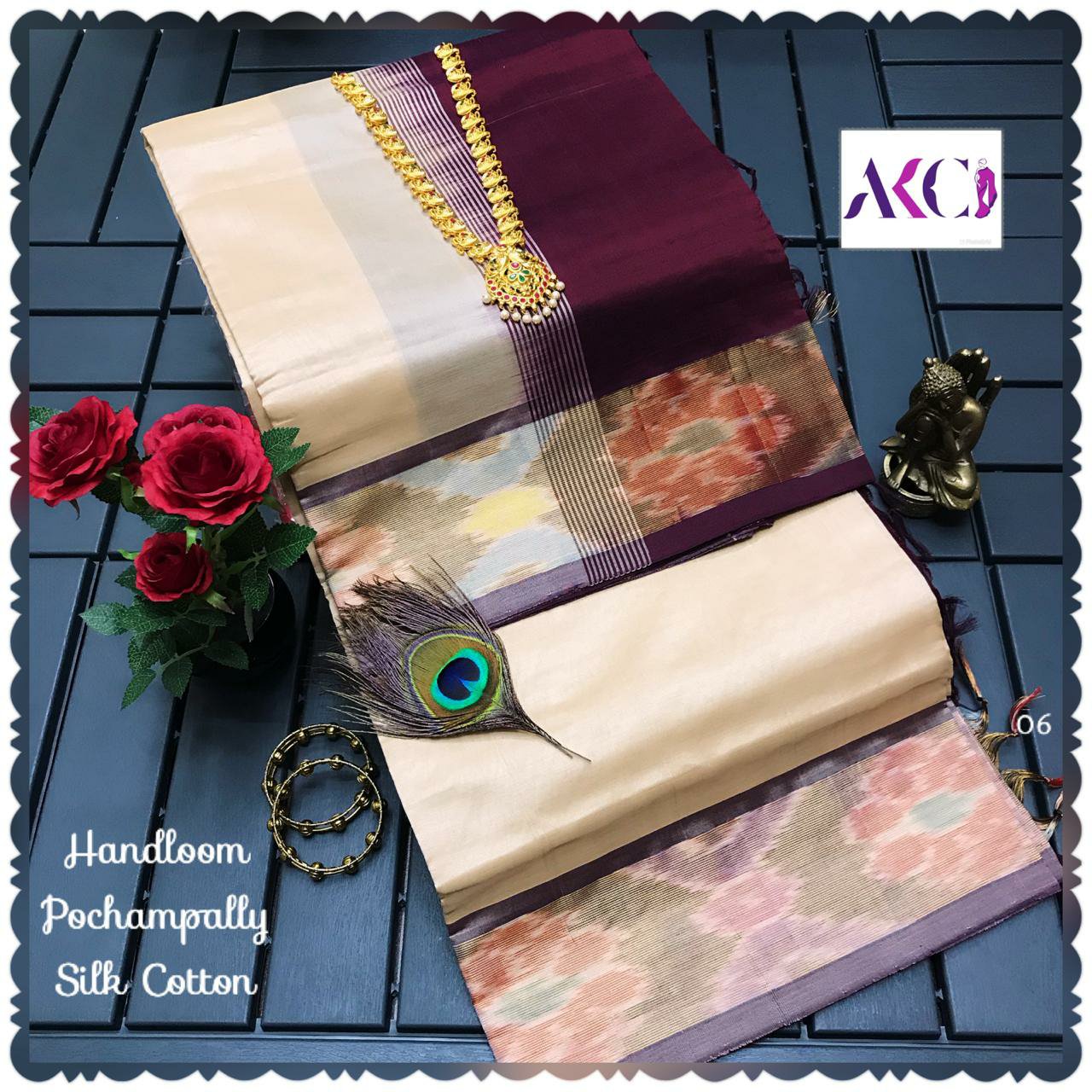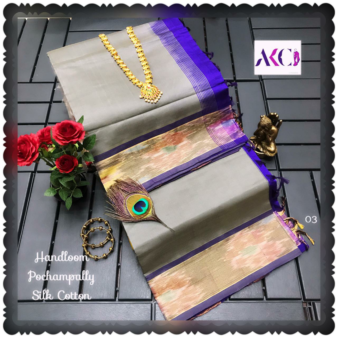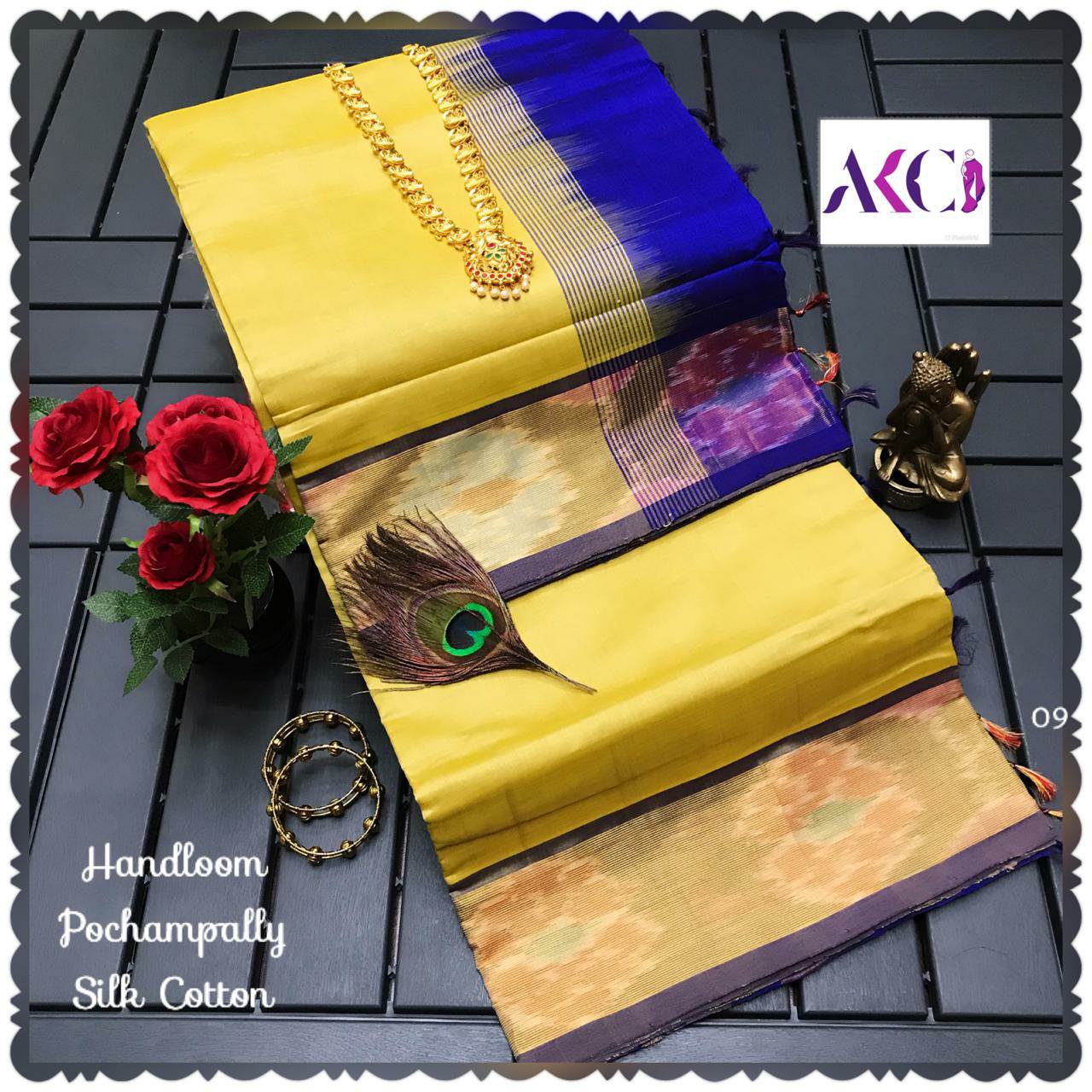 These handloom Sarees are weaved with lavishing Color combination to make u look elegant and traditional with contrast Pallu and double side pochampally border 01