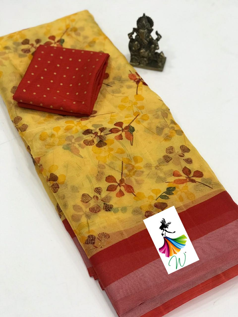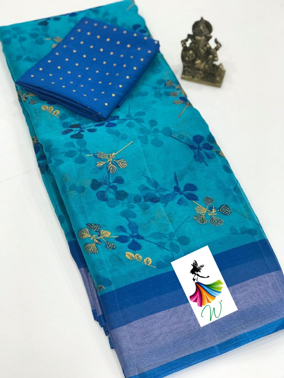 Organza Blended Printed saree with Foil Print Fancy Bandhandi Style Print all over the saree and fancy printed blouse
