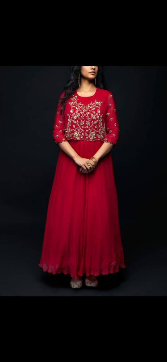 Beautiful Heavy Rayon Fabric Full Embroidery Work Top(Koti) + Kurti (Inner)