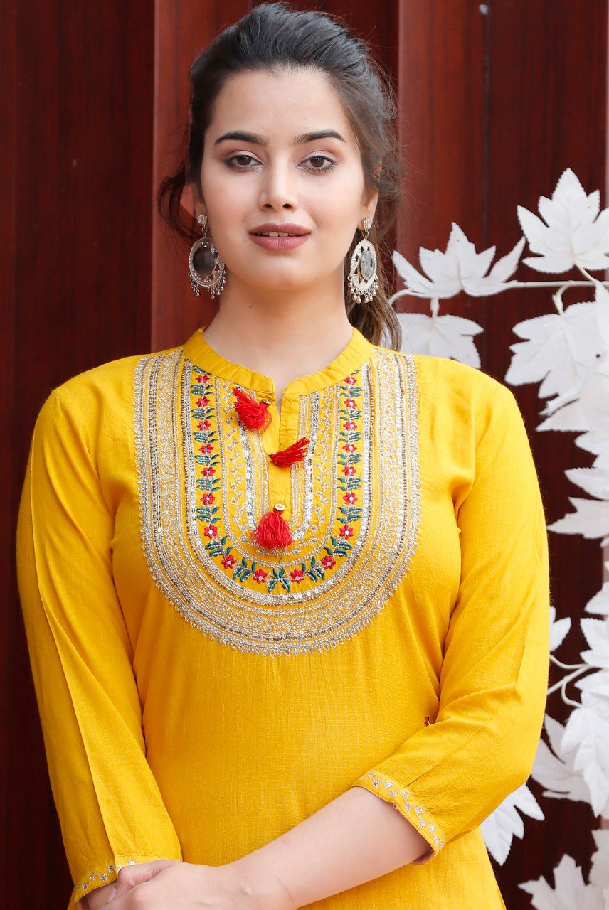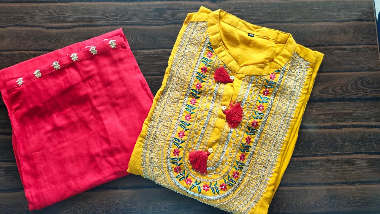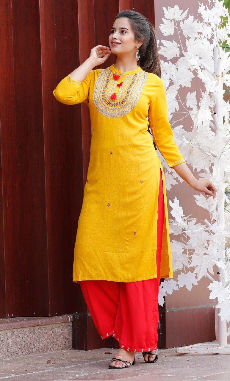 Beautiful New Design Rayon Slub fabric fine quality kurti with full Hand, Embroidery work tagai work and Palazzo bottom with embroidery work👗