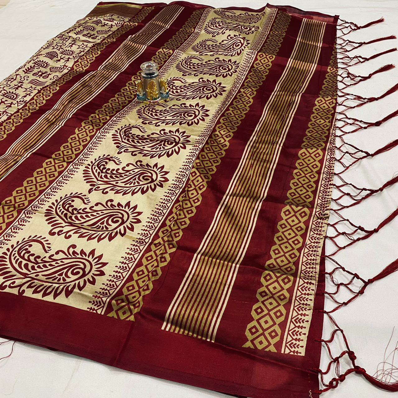 Malai Silk Sarees Posted on October 24, 2020October 28, 2020 by bendthetrend19 Rich Print Malai Silk Saree with Tribal Design all over the design with Beautiful Border with Matching Rich Print Pallu and Rich Print Blouse at Rs 499 + Shipping CC Share this: Click to share on Facebook (Opens in new window) Facebook Click to share on WhatsApp (Opens in new window) WhatsApp Click to email a link to a friend (Opens in new window) Email Click to share on LinkedIn (Opens in new window) LinkedIn Like Loading... Related