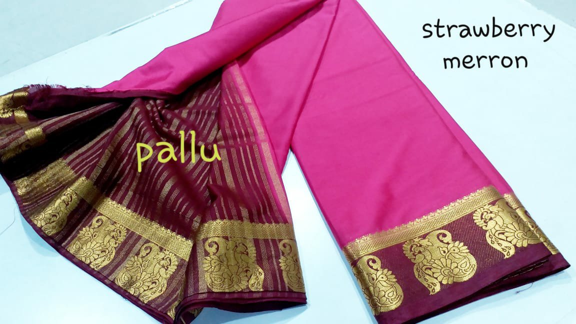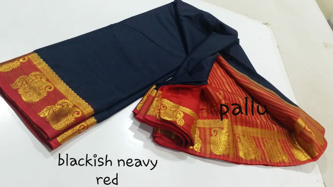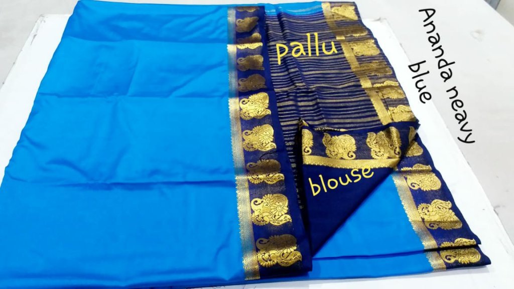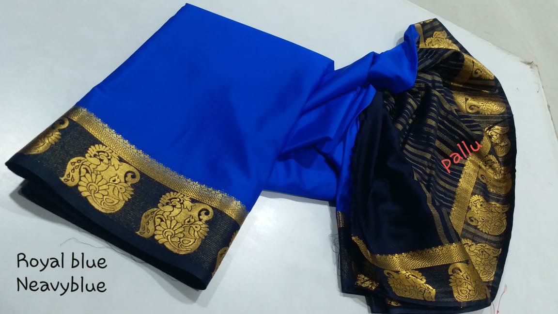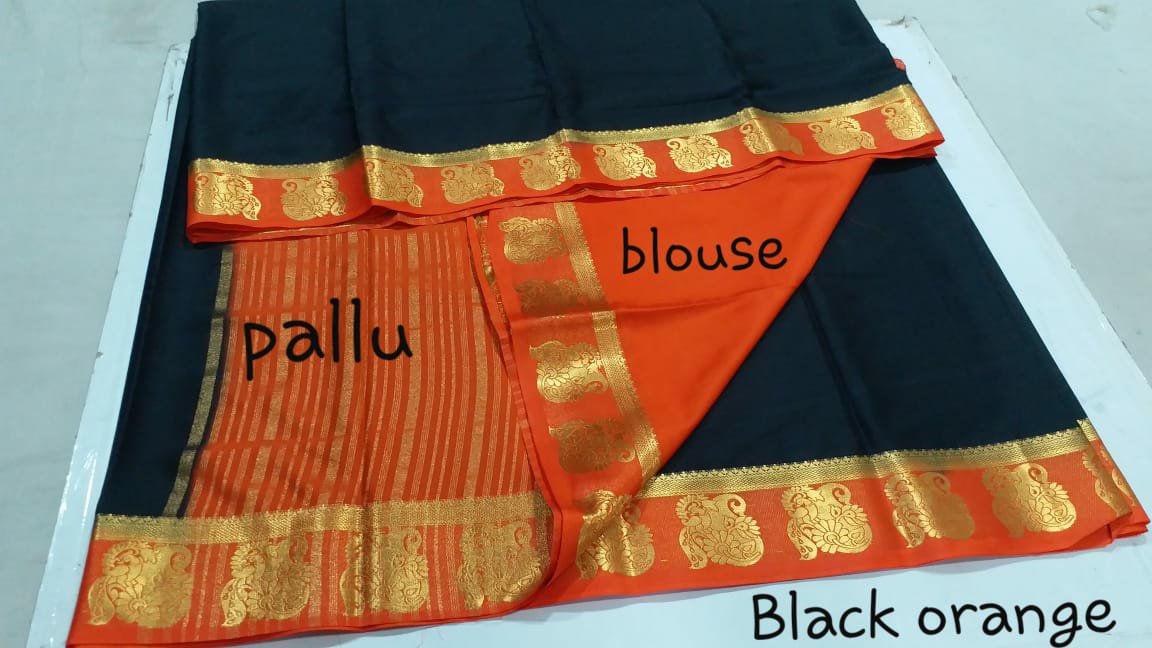 Material = Mysore silk “mango peacock border ” chitt pallu contrast with contrast blouse