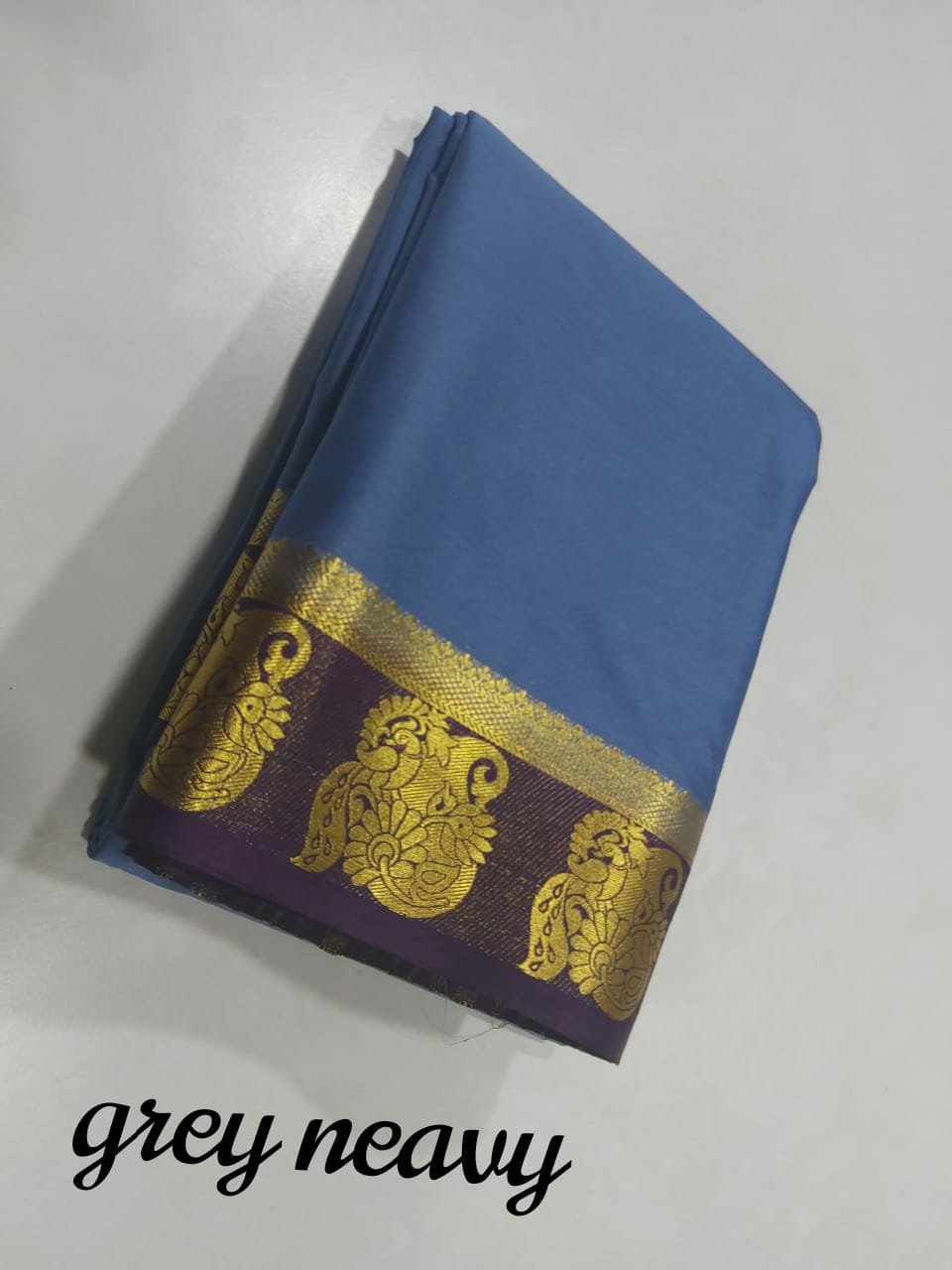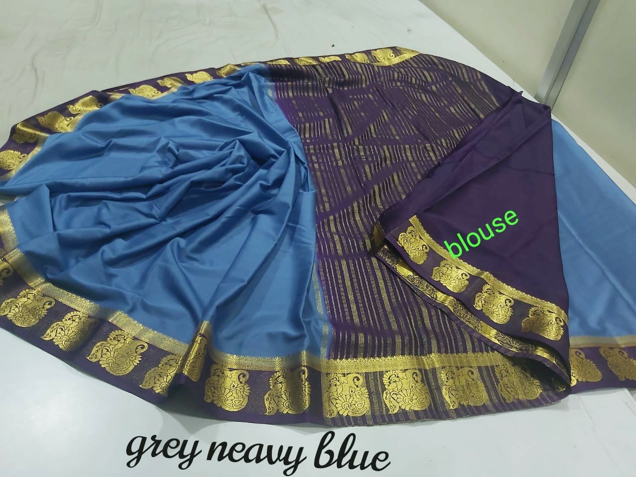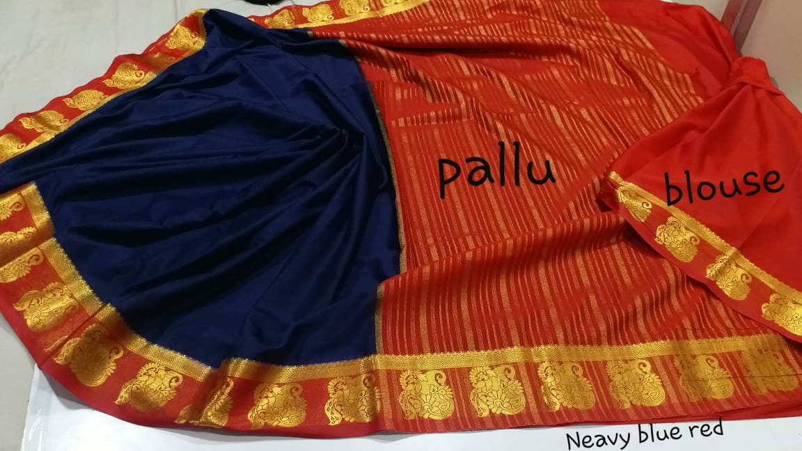 Material = Mysore silk “mango peacock border ” chitt pallu contrast with contrast blouse