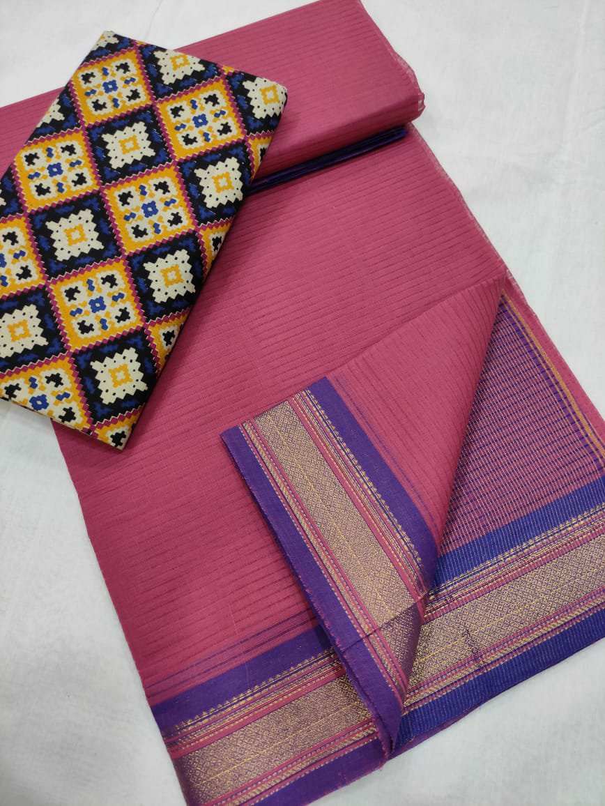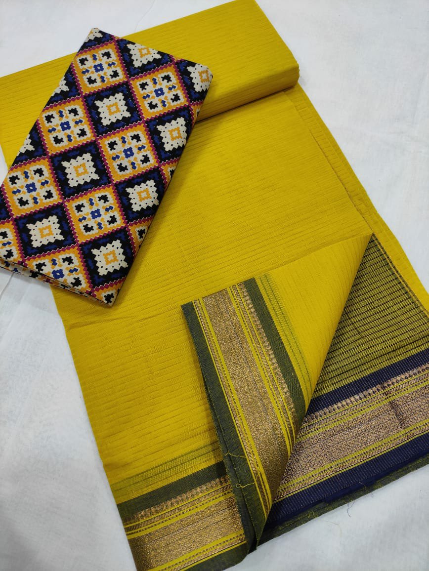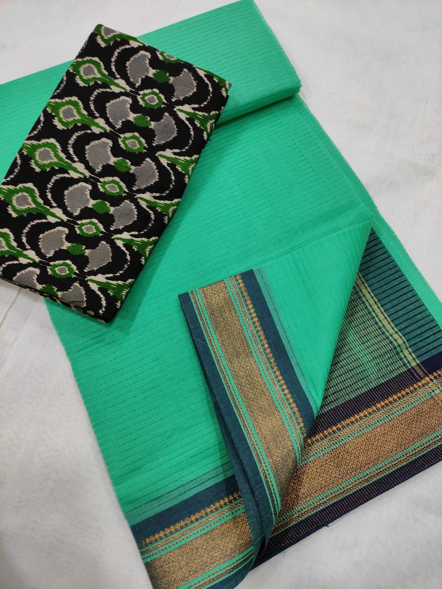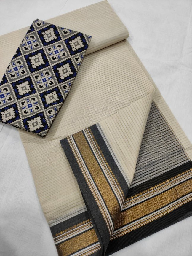 Mangalagiri Cotton Zari Border Missing Stripe Saree