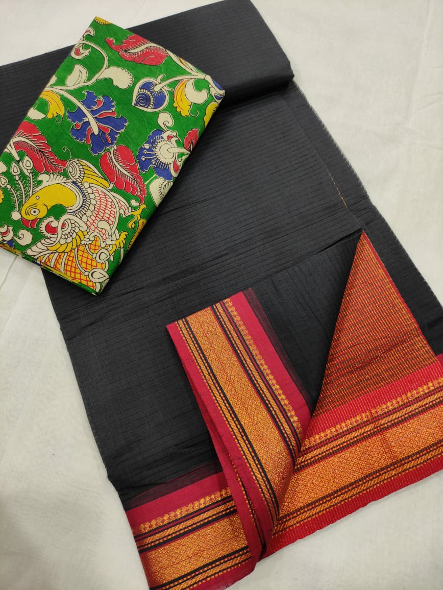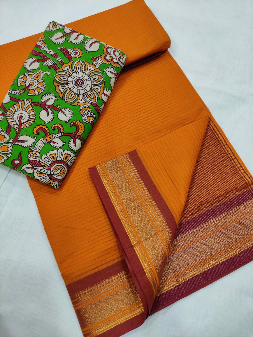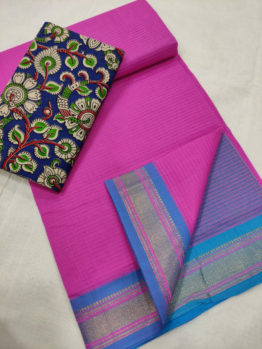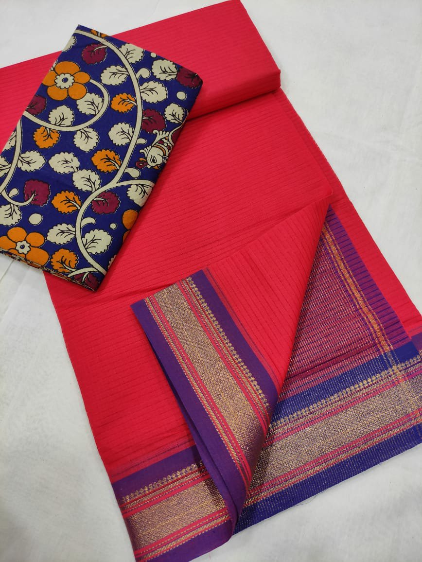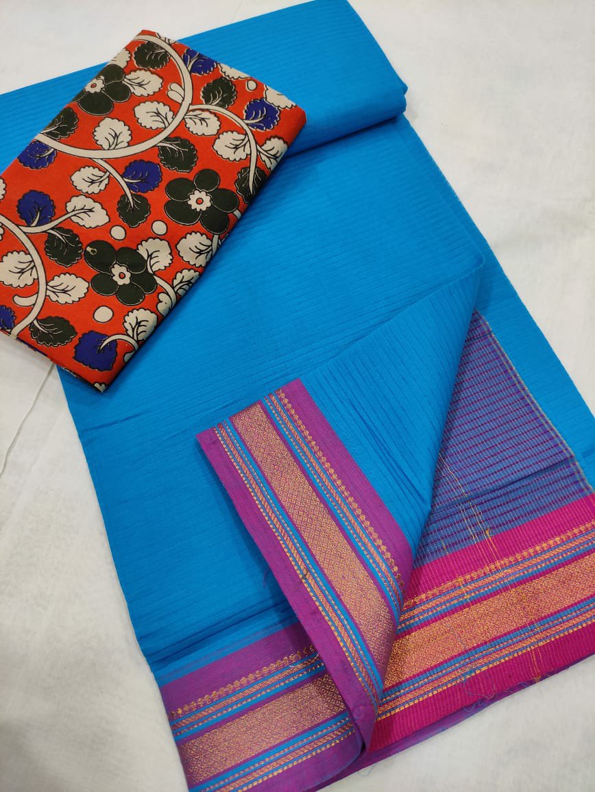 Blouse: Contrast Colour Plain Blouse + Kalamakri Cotton Blouse