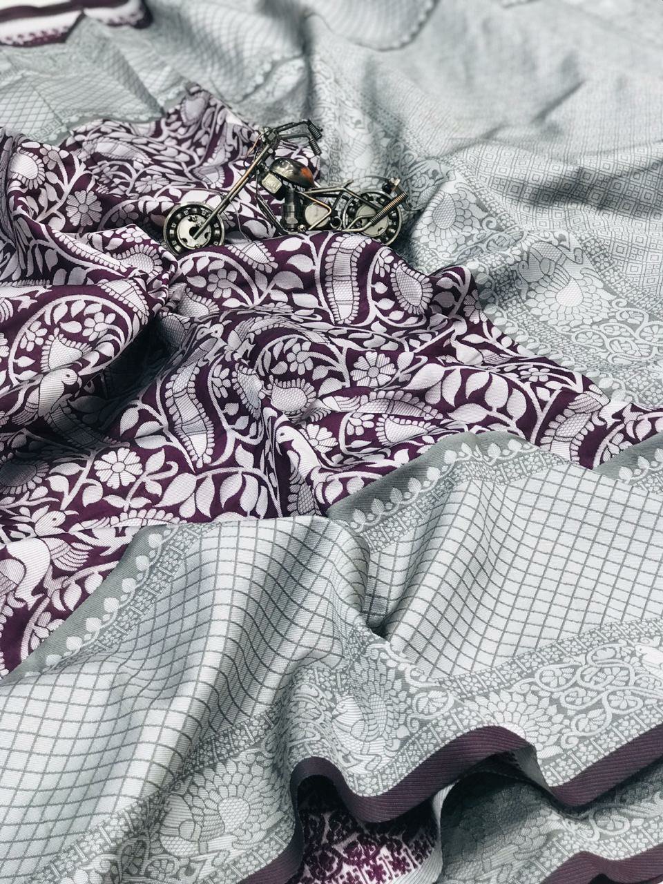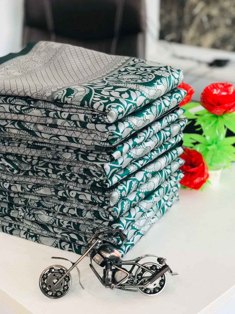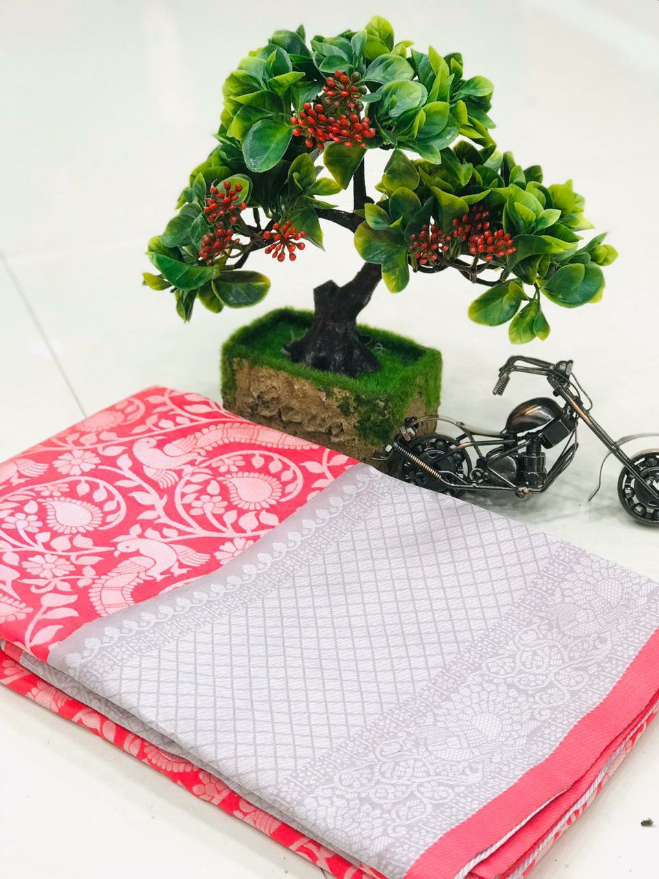 Fabric details – Soft silk Kanjivaram saree with beautiful pure Silver weaving, comes with 10 inch border on both side & rich silver zari weaving pallu