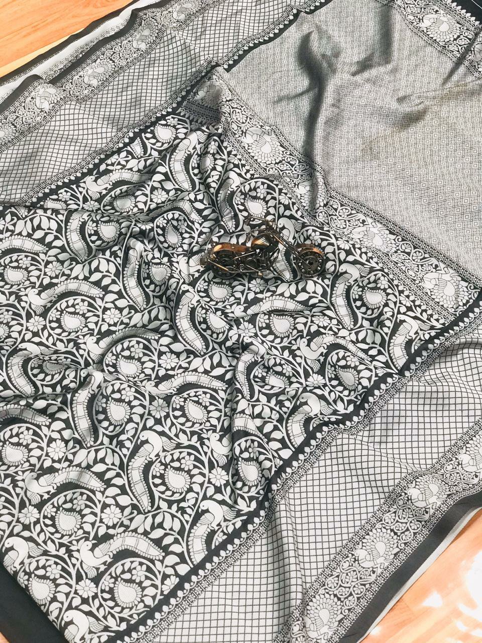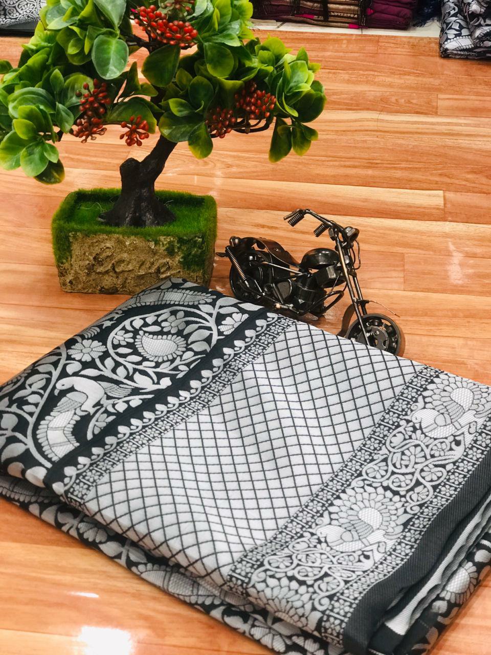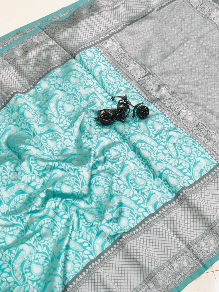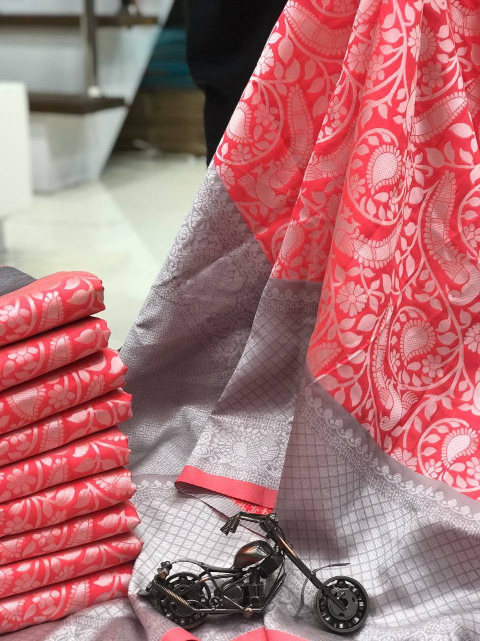 Fabric details – Soft silk Kanjivaram saree with beautiful pure Silver weaving, comes with 10 inch border on both side & rich silver zari weaving pallu