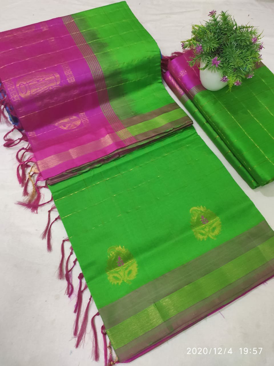 Tripura Silk Sarees Posted on December 7, 2020December 9, 2020 by bendthetrend19 New Model Tripura silk sareesAll over body beautiful gold zari mothi checks Beautiful and small Hand woven buta with no backside threads Simple zari border Rich palluContrast blouse Special price : 2150/- 01 Share this: Click to share on Facebook (Opens in new window) Facebook Click to share on WhatsApp (Opens in new window) WhatsApp Click to email a link to a friend (Opens in new window) Email Click to share on LinkedIn (Opens in new window) LinkedIn Like Loading... Related