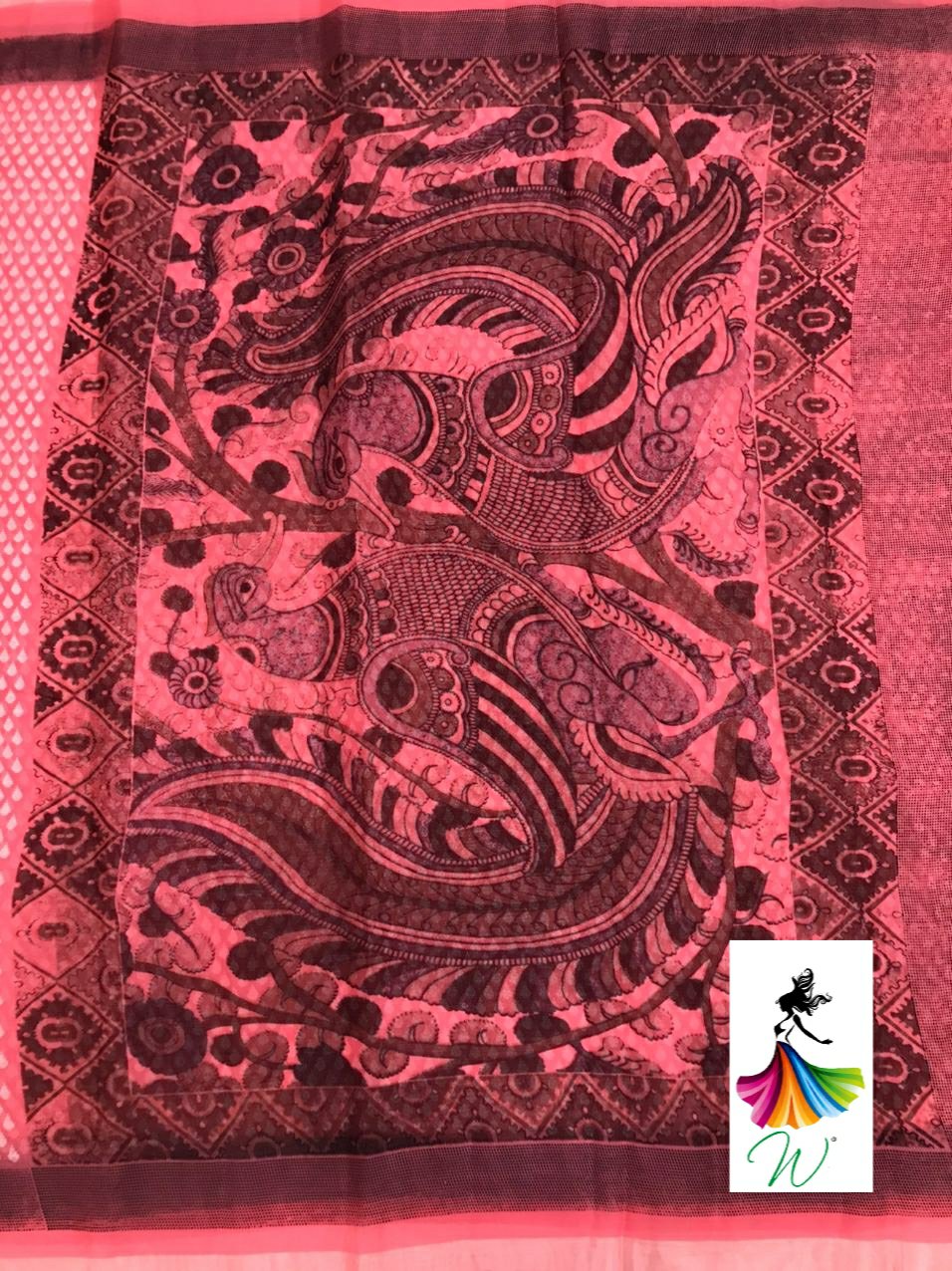 Organza In Kalamkari Pallu Prints and Printed Body n Kamakari Printed Blouse