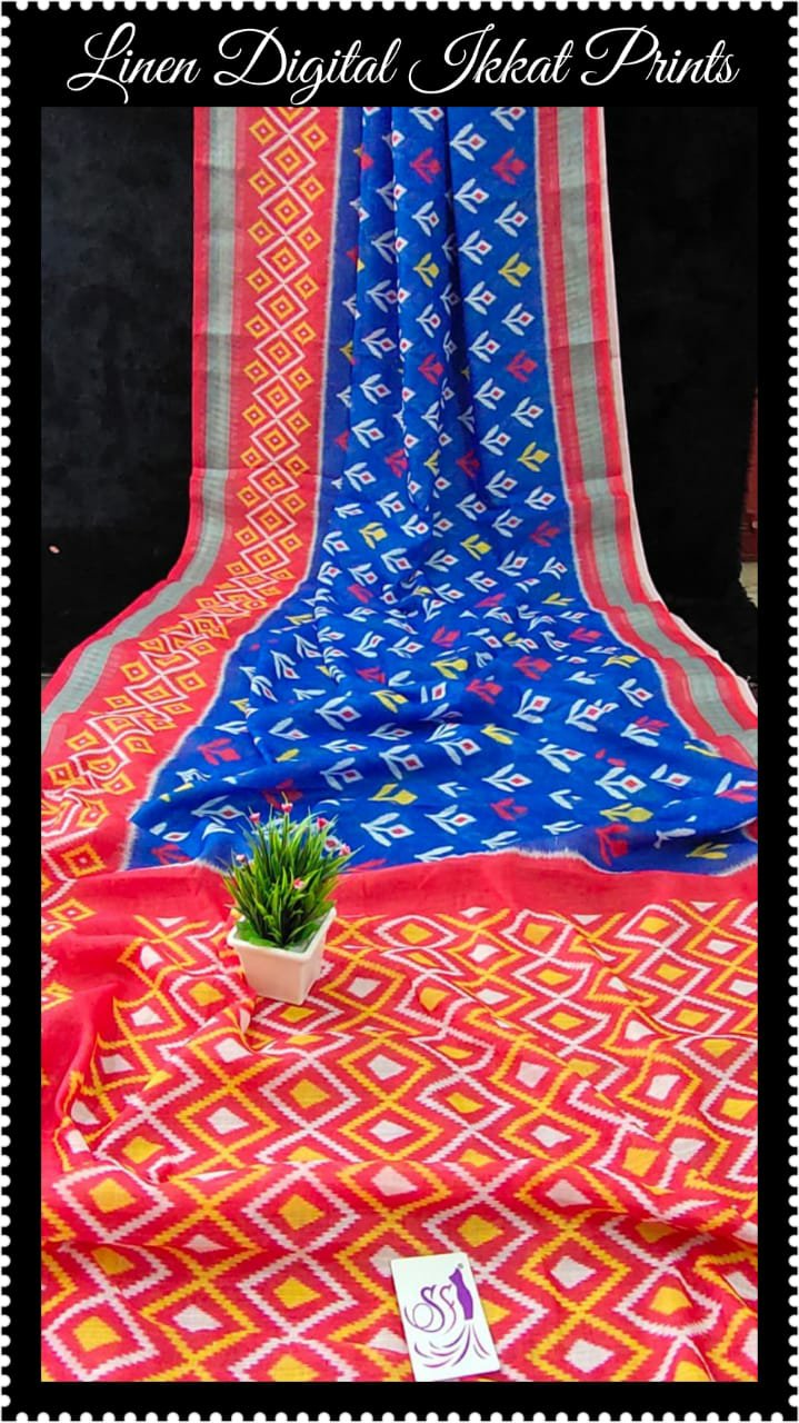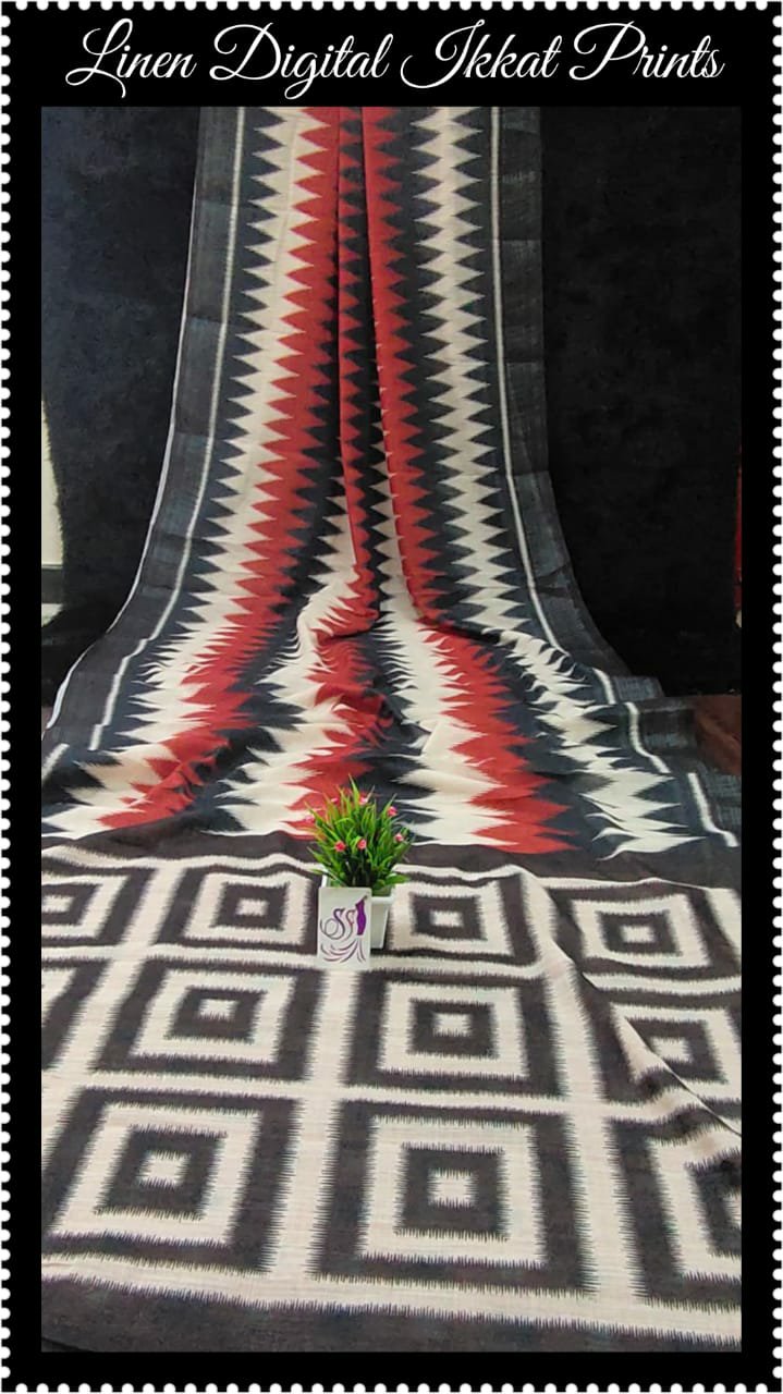 Linen digital prints on ikat style