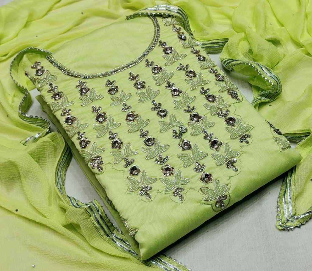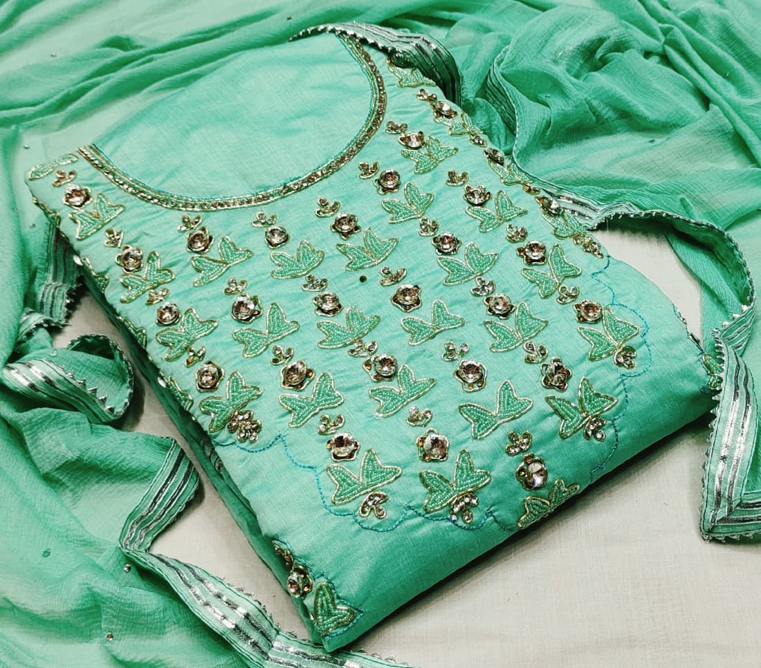 Party wear Suits Posted on February 3, 2021February 3, 2021 by bendthetrend19 New arrival Party wearTop chanderi modal silk hand work with inner2.50mtrDupatta chiffon gotta patti less work 2.25mtrBottom silk 2mtr Ar*Rs 1225/- free shipping Share this: Click to share on Facebook (Opens in new window) Facebook Click to share on WhatsApp (Opens in new window) WhatsApp Click to email a link to a friend (Opens in new window) Email Click to share on LinkedIn (Opens in new window) LinkedIn Like Loading... Related