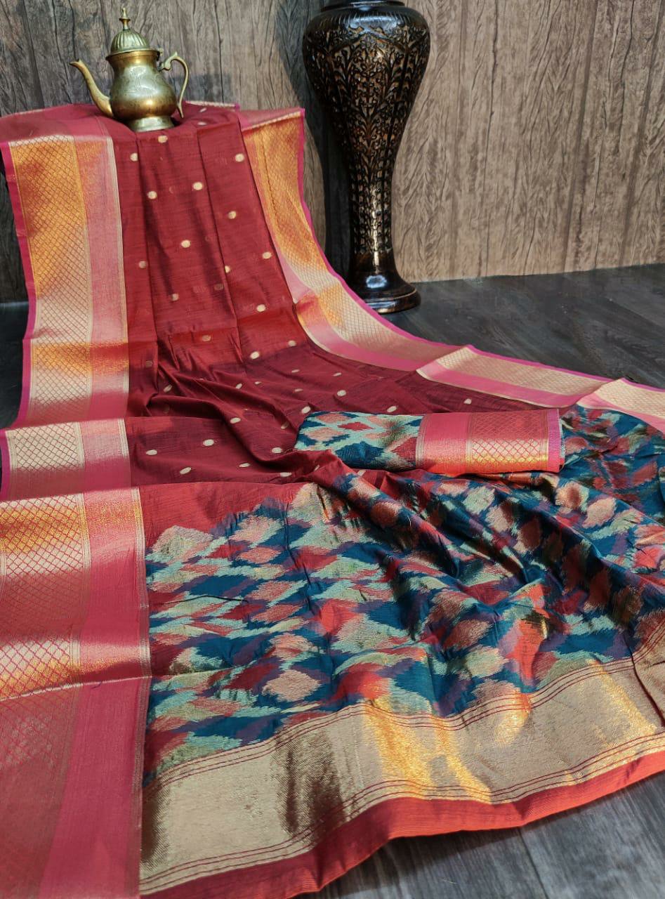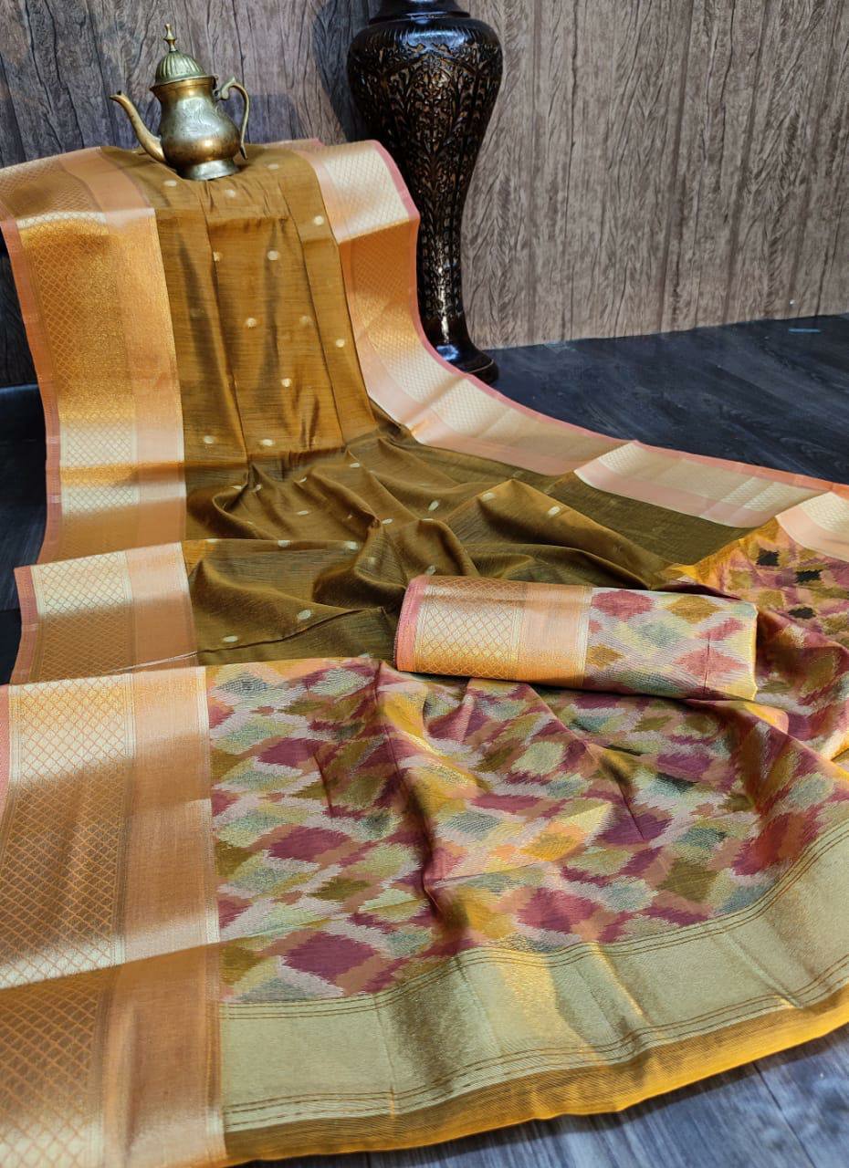Chanderi Cotton Sarees Posted on February 6, 2021 by bendthetrend19 New ArrivalPure chanderi cotton saree with zari woven border andzari woven ikkat pallu and same ikkat woven blouse piece Rate – 1525/– free ship Ready stock availablePremium quality assured06 Share this: Click to share on Facebook (Opens in new window) Facebook Click to share on WhatsApp (Opens in new window) WhatsApp Click to email a link to a friend (Opens in new window) Email Click to share on LinkedIn (Opens in new window) LinkedIn Like Loading... Related