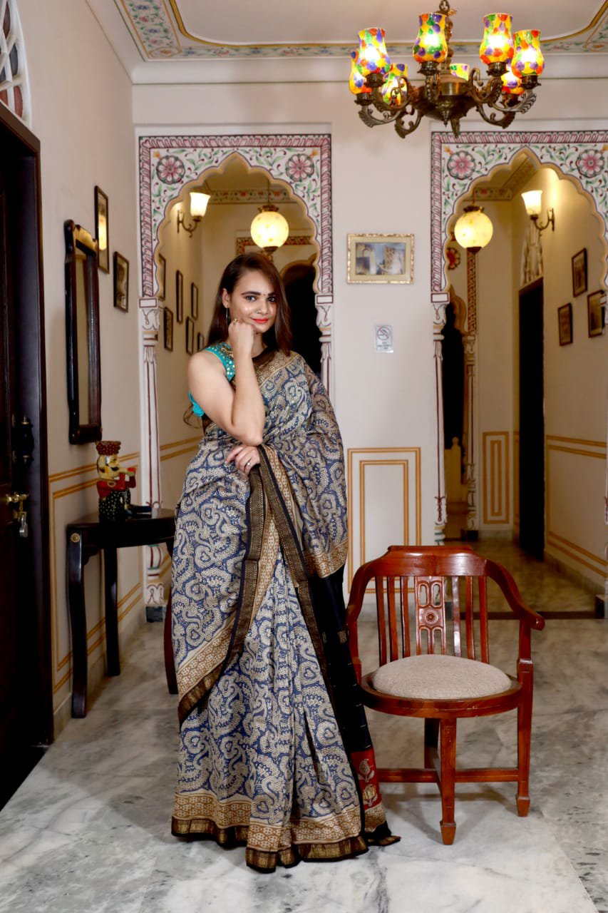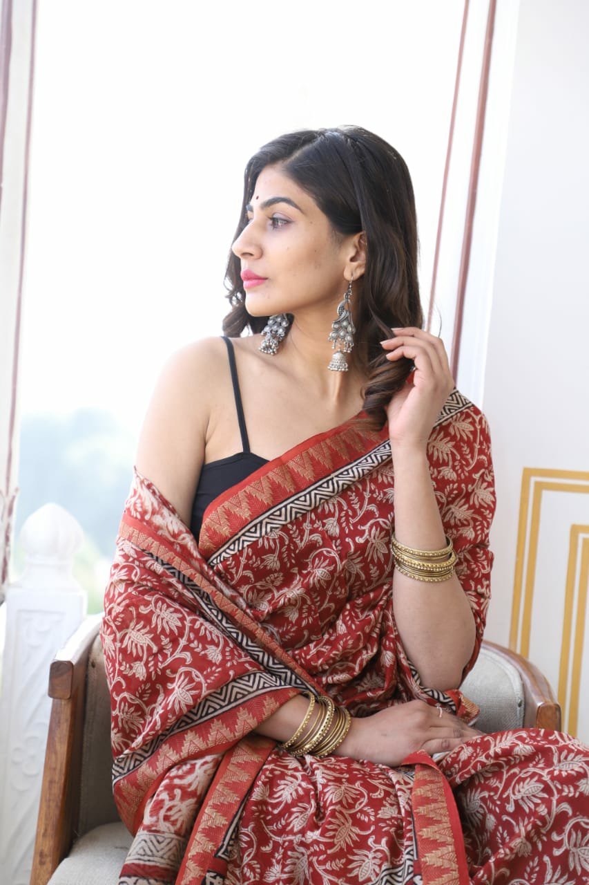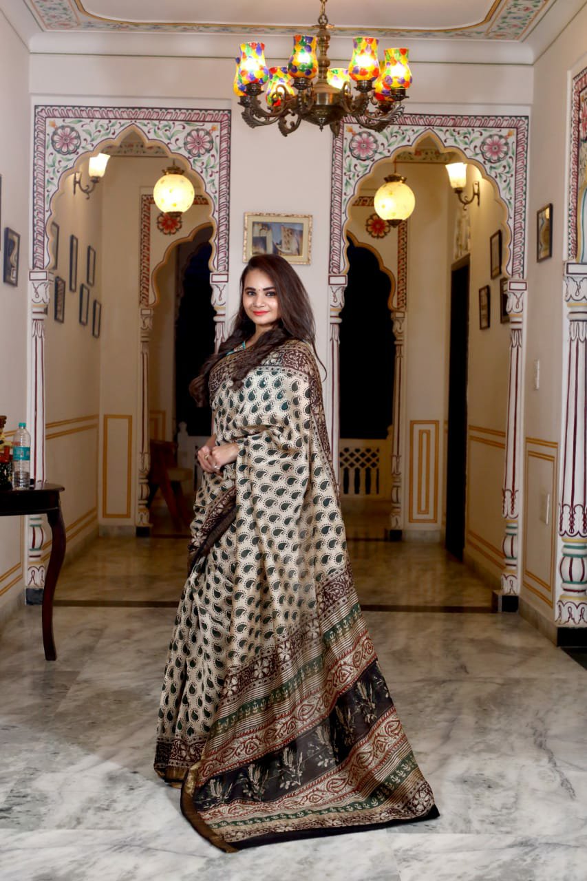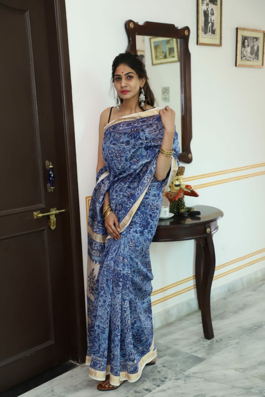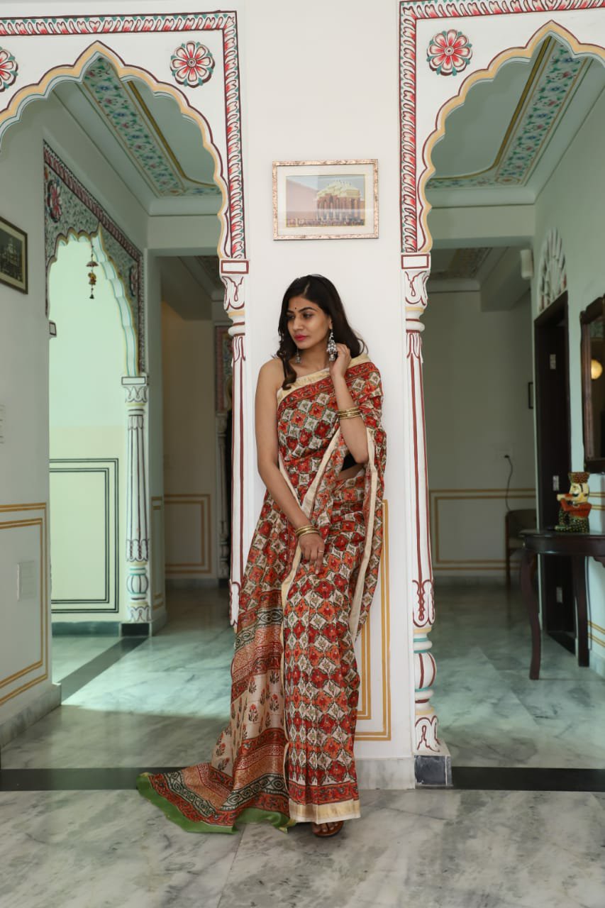 Beautifull Athentic Hand Block Printed Maheshwari Silk Sarees