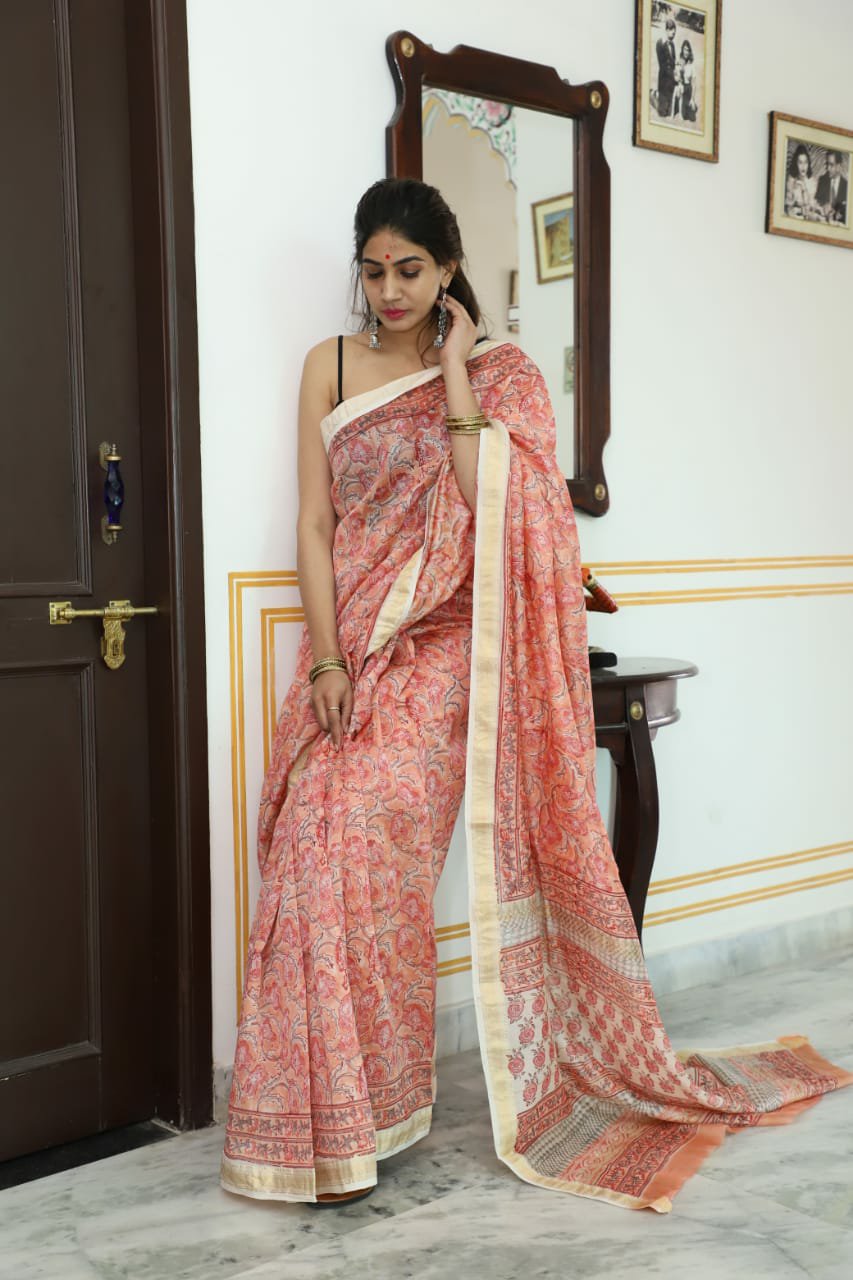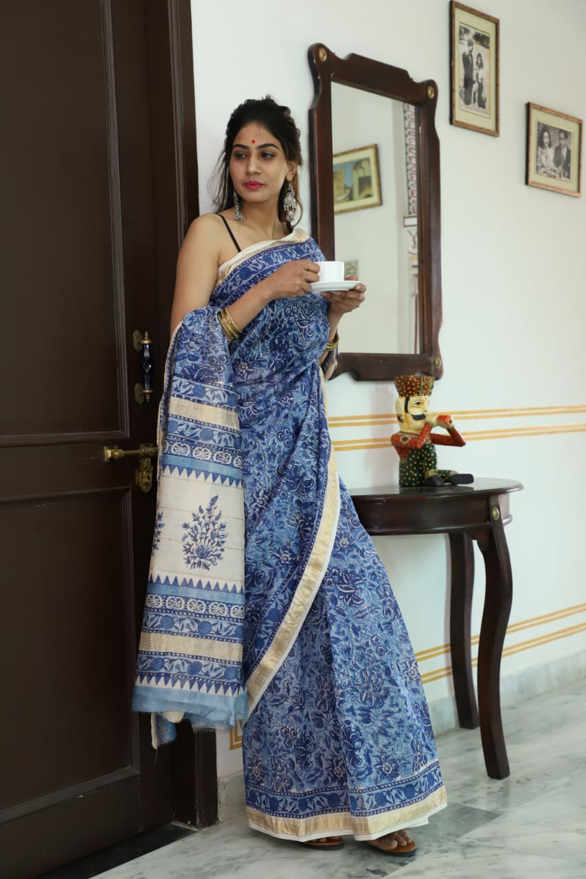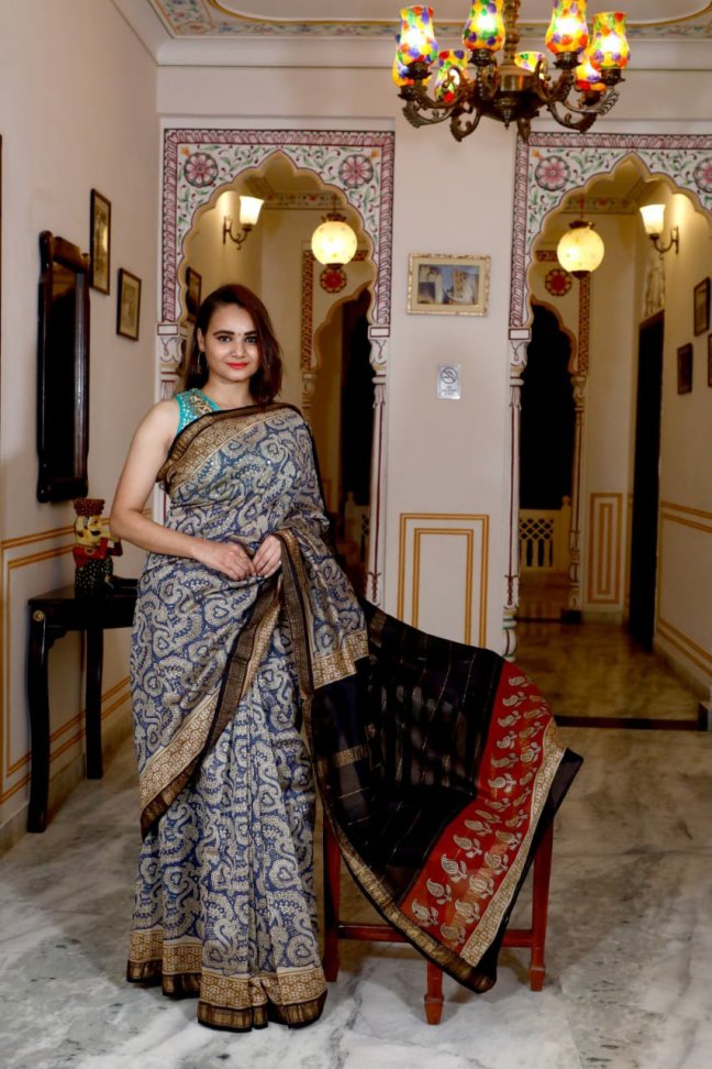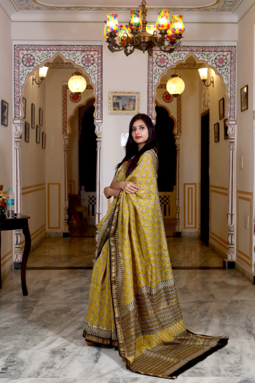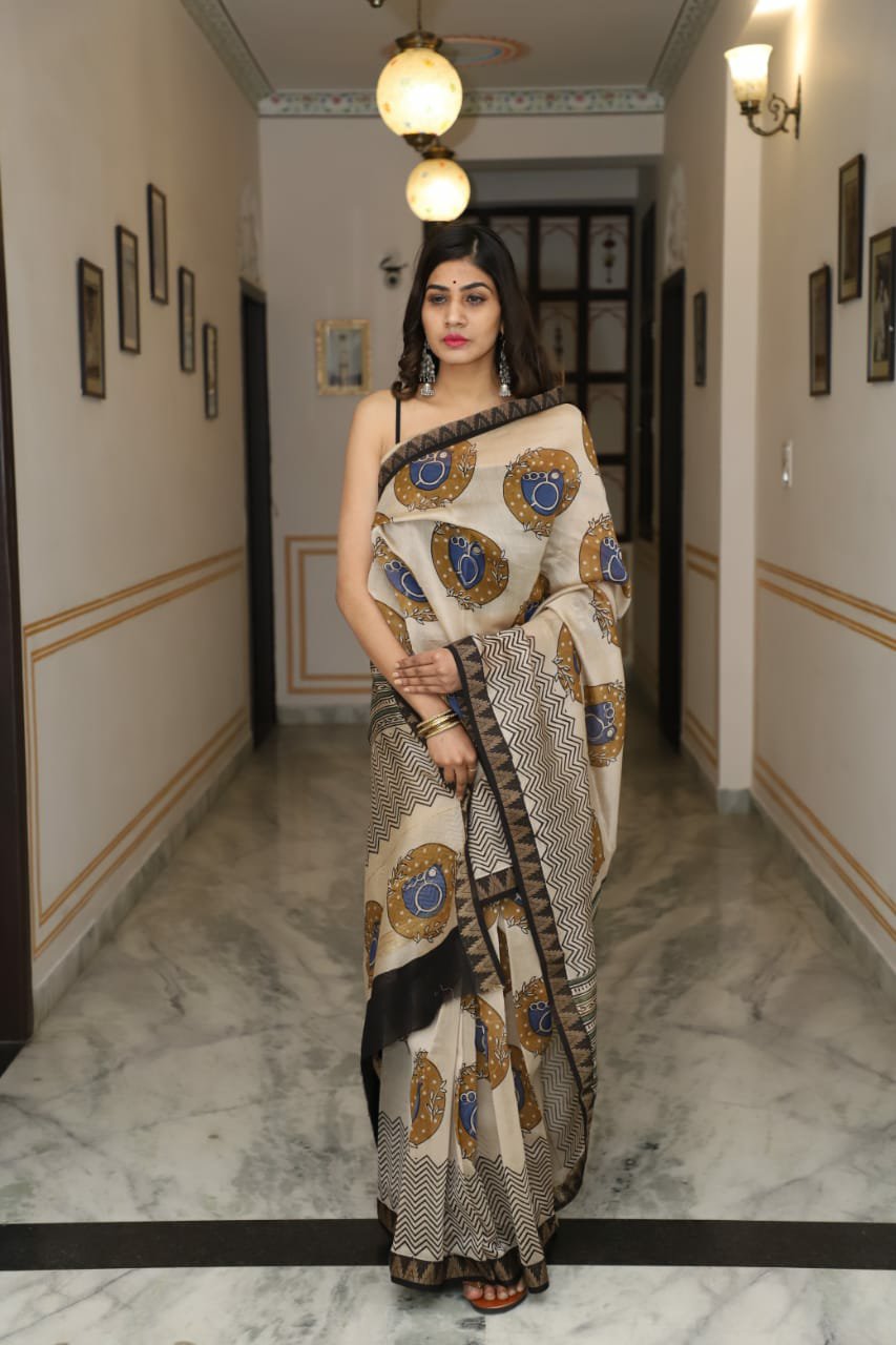Beautifull Athentic Hand Block Printed Maheshwari Silk Sarees