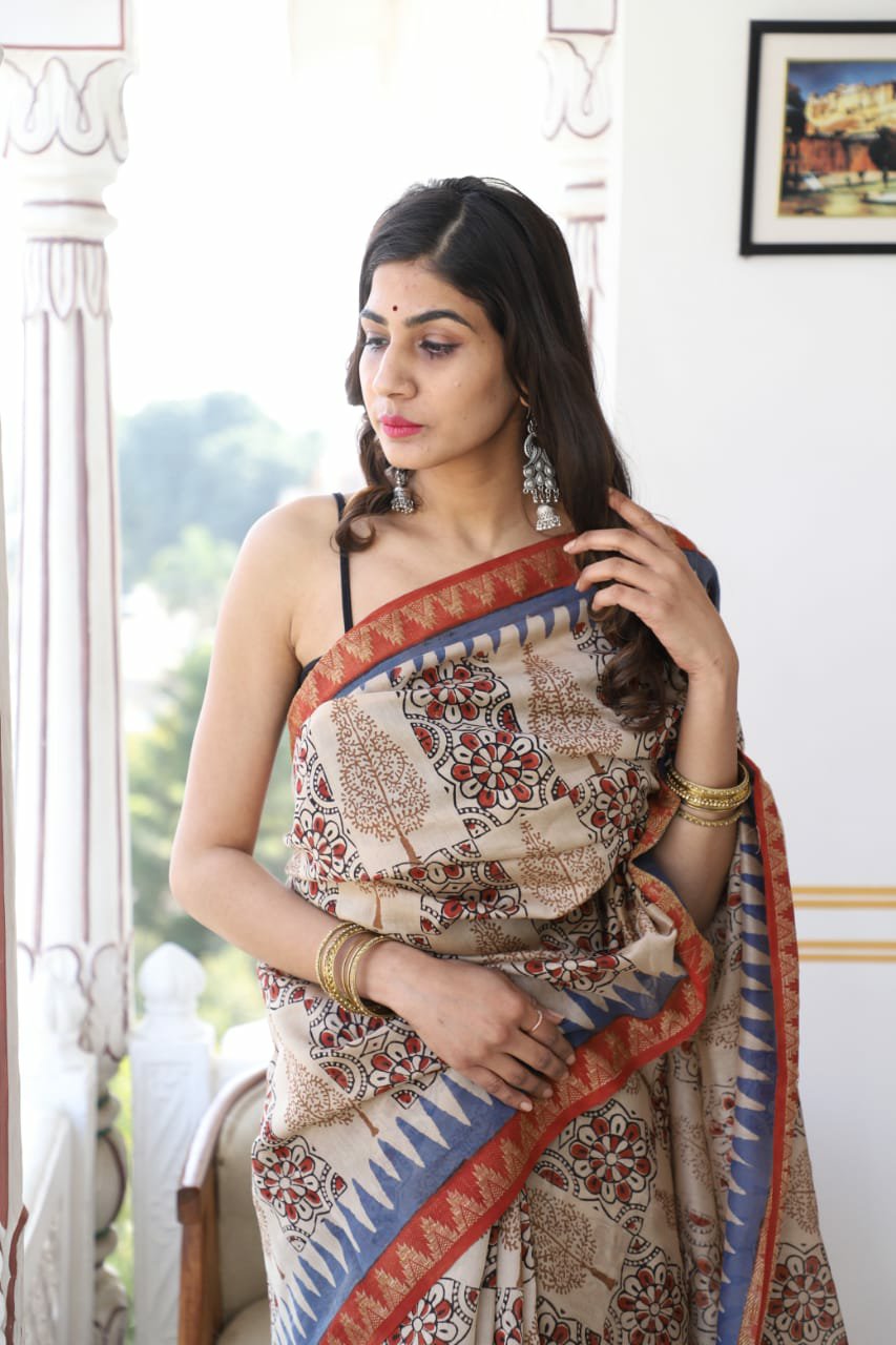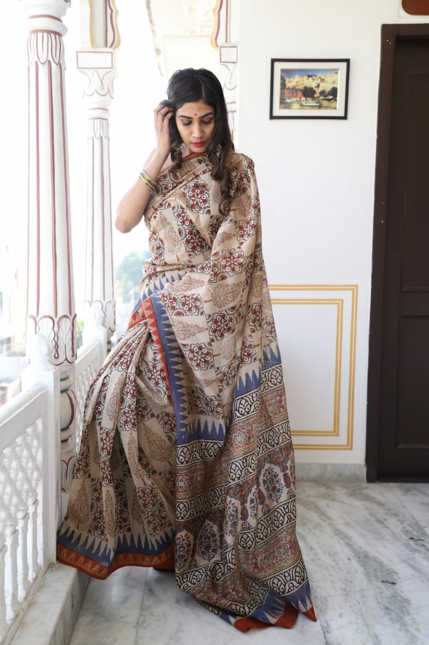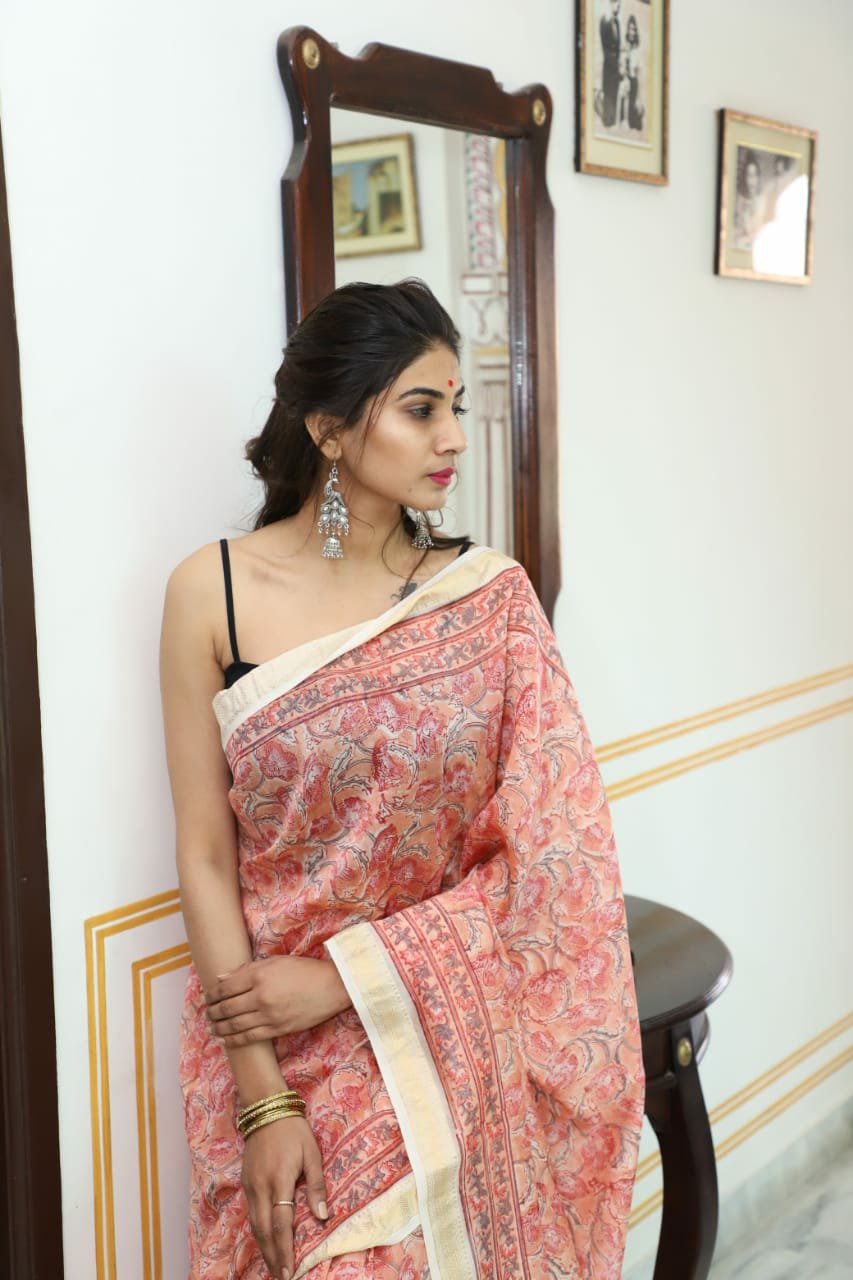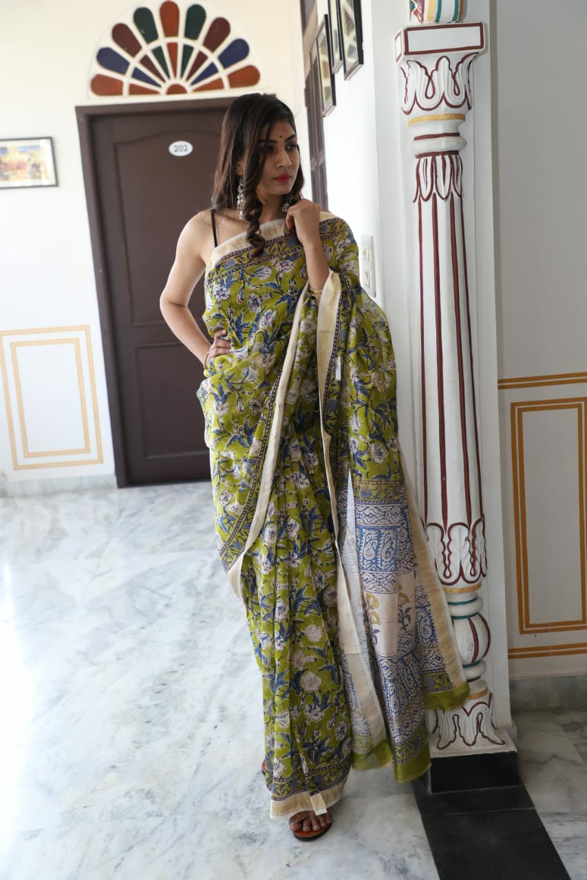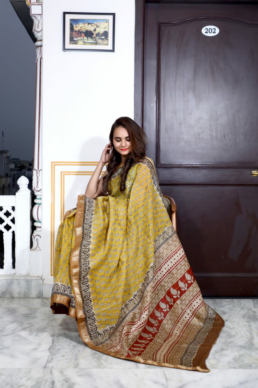 Beautifull Athentic Hand Block Printed Maheshwari Silk Sarees